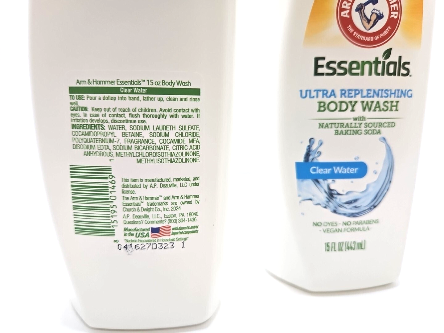 2 Pk Body Wash Arm & Hammer Essentials Ultra Replenishing Clear Water Fragrance Wash. 15 oz in each bottle. NEW
