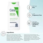 [ CLEANSE & REFRESH ] Formula forms a gentle foaming lather to cleanse without stripping skin of its natural moisture. Skin is left feeling moisturized & smooth, never tight or dry. [ HYDRATING BODY WASH ] Formulated with Hyaluronic Acid to help retain skin’s natural moisture, and Glycerin to help moisturize. [ SKIN CARE FOR DRY SKIN ] Massage CeraVe Hydrating Body Wash into skin in gentle, circular motions with a washcloth or shower loofah. Can be paired with CeraVe Moisturizing Cream to lock in moisture. [ 3 ESSENTIAL CERAMIDES ] Ceramides are found naturally in the skin and make up 50% of the lipids in the skin barrier. All CeraVe products are formulated with three essential ceramides (1, 3, 6-II) to help restore and maintain the skin’s natural barrier. [ DEVELOPED WITH DERMATOLOGISTS ] CeraVe Skincare is developed with dermatologists. Fragrance free, paraben-free, sulfate-free, soap-free, allergy-tested, and non-comedogenic. Accepted by the National Eczema Association. Developed with dermatologists, CeraVe Hydrating Body Wash contains a gentle, foaming formula that cleanses and moisturizes the skin. This foaming body wash for normal to dry skin cleanse and refresh the skin while restoring the skin's natural barrier. The formula contains hyaluronic acid to attract needed moisture to skin's surface and 3 essential ceramides (1,3 and 6-II) to help repair the skin's protective barrier. Also includes emollients to moisturize and soften the skin all day. •Fragrance-free •Paraben-free •Sulfate-free •Soap-free •Non-comedogenic •Accepted by the National Eczema Association •Suitable for normal to dry skin Key Ingredients : • Ceramides : Essential for healthy skin, ceramides help restore and maintain the skin’s natural barrier • Hyaluronic Acid : This ingredient attracts hydration to the skin’s surface and helps the skin retain moisture.