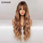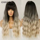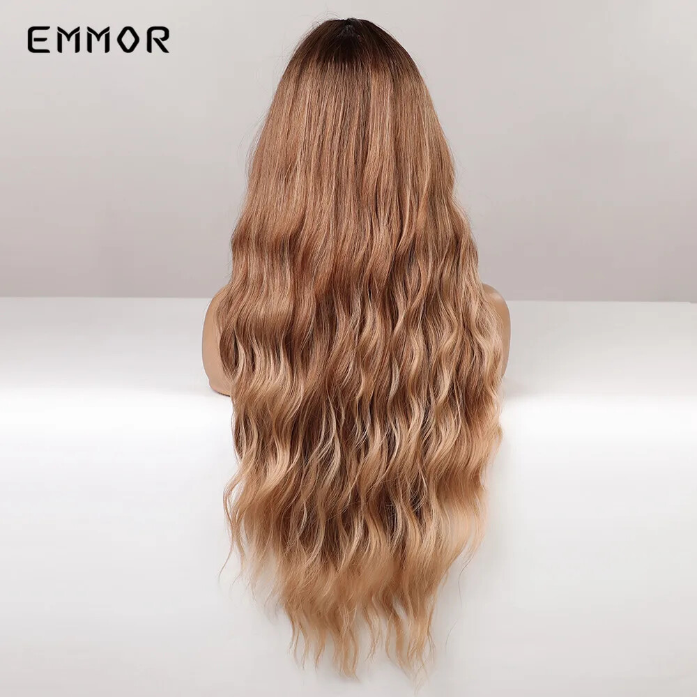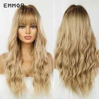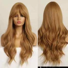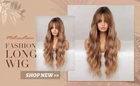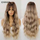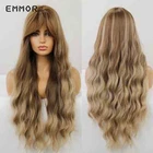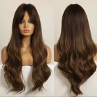 HomeBody Wave Ombre Brown Blonde Synthetic Wig With Bangs Natural Heat Resistant Wig