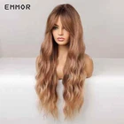 Body Wave Ombre Brown Blonde Synthetic Wig With Bangs Natural Heat Resistant Wig
