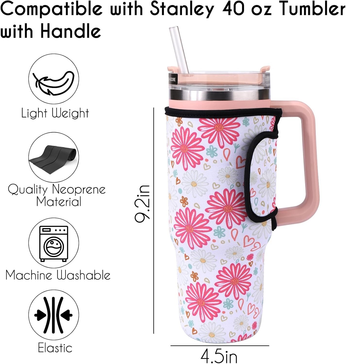 Daisy Cup Holder for Bogg Bag Accessories for Bogg Bag Original X Large Color: for Stanley 40 oz tumbler with handle Material: neoprene Product Dimensions: 6"L x 5"W x 2"H NOTE: Because of the elasticity of our cup holder and to hold the cup more securely, our cup holders are designed to be tighter. This prevents the cup from shaking in the sleeve. Bind the cup sleeve before gluing on the hook and loop tape Convenient and Accessible: This premium daisy cup holder for stanley is the perfect accessories cup holder for bogg bag that gives you easily accessible and secure storage for stanley 40oz cup tumbler, ensuring that you can enjoy your time at the beach or on the go without worrying about your drink spilling or getting lost The innovative design of this bag drink holder is elastic, practical, and functional, making it one of the most versatile inserts for bogg bag. It suitable for stanley 40 oz tumbler with handle, fits inside or outside the bag, and can also hold other essentials Made with elastic neoprene material, this water bottle holder for bogg bag is more adaptable and has a thermal insulation effect. Basking in the sun on a hot beach with a refreshing drink is heaven on earth Stylish and Eye-catching: This cup holder attachment for bogg bag is printed with a daisy pattern for a vibrant and stylish look, makes it the perfect accessory for people who want to add a pop of color to their bag. It is a unique and nifty item that is sure to catch the attention of your friends and family Return Policy: We offer a 30 day return policy from the receiving date. Please contact us for a Free Return Label. Please use our return label so it will go back to our supplier and we can do a refund or replacement afterwards. Feedback: Your satisfaction is very important to us! If you have any problem with your order, please contact us and we will do our very best to make you satisfied. As long as you are happy with your purchase, please leave a positive feedback for us. We will always leave you a positive feedback in return. If you have any problem with your purchase, please do not leave a negative feedback. Please Contact us ... and your issue will be solved quickly and positively We are a small family-owned business trying to make a living, not a huge company that does not care ... We will ALWAYS do our best for you!