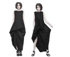 Avant-garde dress that you will love! This extravagant asymmetrical black maxi dress is made of lightweight cotton blend fabric. The dress is draped on one side, has a loose oversized fit and asymmetrical cut. Sleeveless, comes with round neck and cotton belt. Wear it with high heels or flat shoes and it will look fabulous! Absolutely must have! ITEM DETAILS: - Material: lightweight cotton blend (composition: 90% cotton, 10% polyester) - Available sizes: XS, S, M, L - Sleeveless , oversized, comes with round neck and belt - Asymmetrical cut (the dress is shorter from one side for about 25-30cm / 10-12" ) - Loose fit, oversized (please choose your usual size) - Care: hand wash in cold water CELESTIAL BODY s t u d i o SIZE CHART Please note: the most important point of this design is chest measurements as dress fits loose under this area. If you are between the sizes, please contact me. Model's parameters: bust 88cm / 34", waist 60cm / 23", hips 88cm / 34", height 173cm / 5'7" Model wears size XS All standard sizes are made for height of about 170 cm / 5'7 '' We can customize the length according to your height with no extra charge, please leave your personalization with your order SIZE XS Fits figure with this measurements: around bust: 84-90cm / 33-35" around waist: 55-60cm / 21-23" around hips: 84-90cm / 33-35" SIZE S Fits figure with this measurements: around bust: 90-93cm / 35-36" around waist: 65-71cm / 33-28" around hips: 90-95cm / 35-37" SIZE M Fits figure with this measurements: around bust: 93-96cm / 36-38" around waist: 71-80cm / 28-32" around hips: 95-100cm / 37-39" SIZE L Fits figure with this measurements: around bust: 96-105cm / 38-41" around waist: 85-90cm / 31-36" around hips: 100-105cm / 39-41" SIZE XL Fits figure with this measurements: around bust: 106-110cm / 42-43" around waist: 90-100cm / 35-40" around hips: 105-110cm / 41-43" Each piece is individually cut and sewn specially for you in our small studio by me and my team. Fabrication of high-quality handmade items takes some time, please allow 3-5 days for your order to be made. SHIPPING and PROCESSING time We ship with registered airmail from Ukraine, the delivery time is 10-28 business days. Express shipping upgrade is available for an extra fee on check out or please contact us before purchase. Thank you for visit my shop!