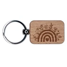 Bohemian Floral Rainbow Engraved Wood Rectangle Keychain Tag Charm