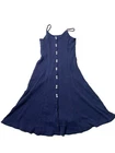 Bohemian Ribbed Button Front Navy Midi Dress Womens Size S Beachy Coastal A Line. Condition is Pre-owned. Shipped with USPS Ground Advantage.