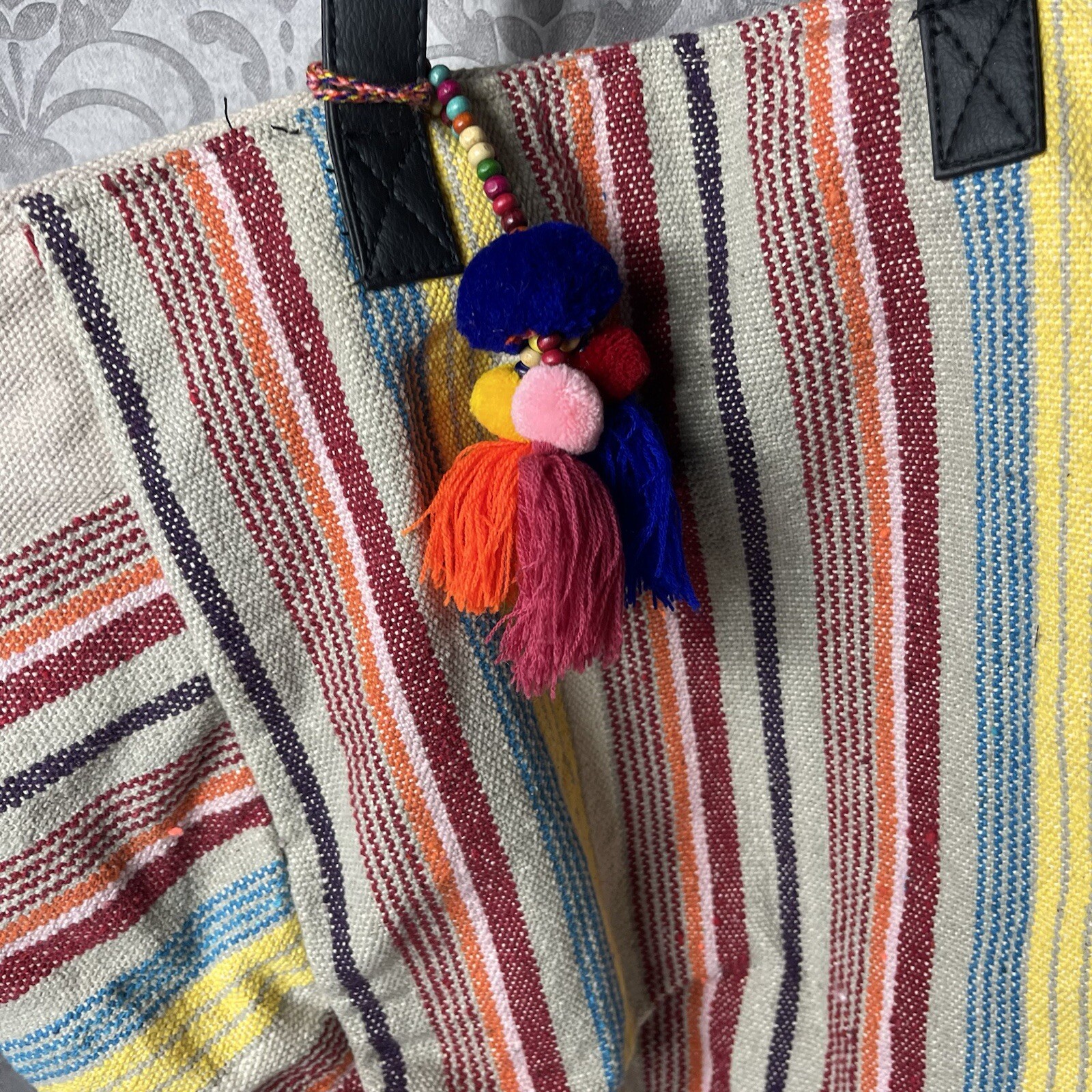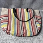 Vibrant and stylish, this multicolor tote bag is perfect for any occasion. Featuring bold stripes in red, yellow, and blue, it adds a pop of color to your outfit. Ideal for everyday use, this bag combines fashion with functionality.
