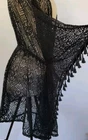 This Women's Black Crochet Jacket Cardigan Wrap with Tassles is the perfect boho summer addition to your wardrobe. Made from lightweight and breathable polyester, this relaxed fit cardigan features a tie closure and tasseled accents for added flair. The doily pattern and mid-length design make it ideal for casual occasions or travel, while the black color and beach, hippie, and bohemian themes give it a unique and stylish vibe. Hand wash only to keep this stylish piece looking fresh and fabulous.