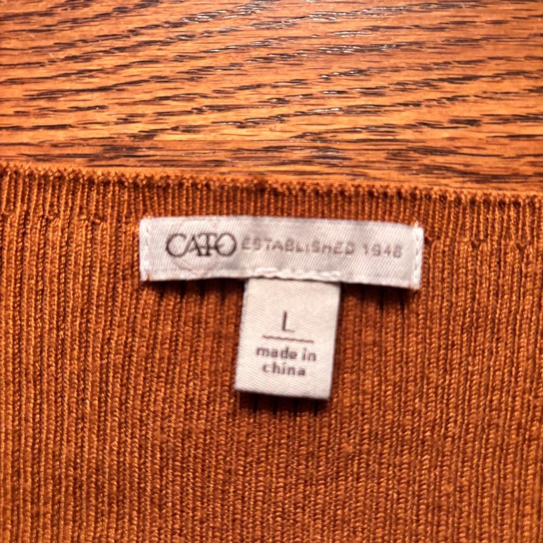 Cato Sweater Top Women's Size L Brown with embroidered Crochet Flower Sleeves Item is in good pre-owned condition. May show signs of general wear and tear. Please see photos for full details. Any size measurements shown are approximate. Smoke free, pet friendly home. Colors may vary slightly based on lighting. Measurements: Pit to Pit 15" Item Length 22"