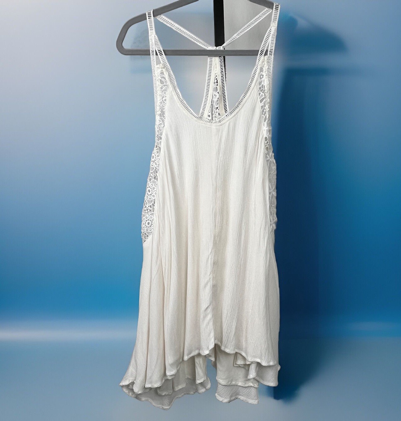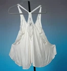Illa Top Small Solid White Floral Crochet Asymmetrical Tunic Blouse Sleeveless Tank Layer Bust 34 Length 30-34 rayon, polyester crochet Cottage Twee Beach Summer Festival Hippie Boho Peasant