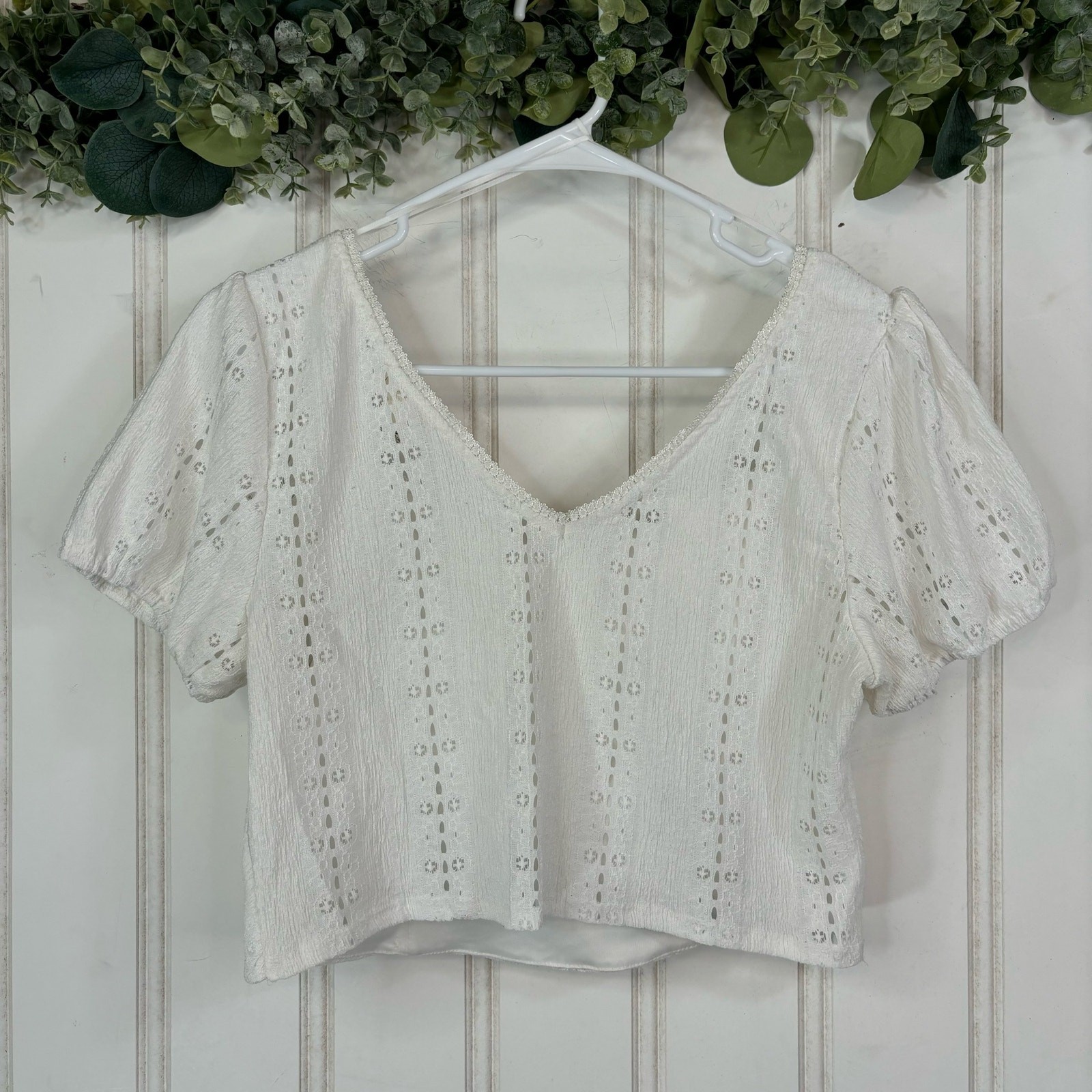 Condition: pre-loved, overall Great condition, two very tiny marks (see photos) URBAN ROMANTICS White Peasant Puff Sleeve Crop Top Elastic Sleeve Hems Front of Shirt Lined, rear Not lined Some Stretch #boho #summer #cottage #cottagecore #feminine Size LARGE 98% Polyester 2% Spandex Measurements are approx Bust: 34 inches (17 inches across front) Sleeves: 7.5 inches Length: 10 inches T95