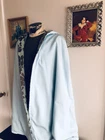 This is a unisex cotton blend floral cape cloak inspired by fantasy and sci-fi franchises like Lord of the Rings, Game of Thrones, Harry Potter, and Star Wars. It features a fleece fabric type, acrylic lining, and is one size fits all with a blue color. The cape is reversible, lightweight, and hooded, suitable for fans of movies, cartoons, and anime with a touch of gothic and preppy styles.