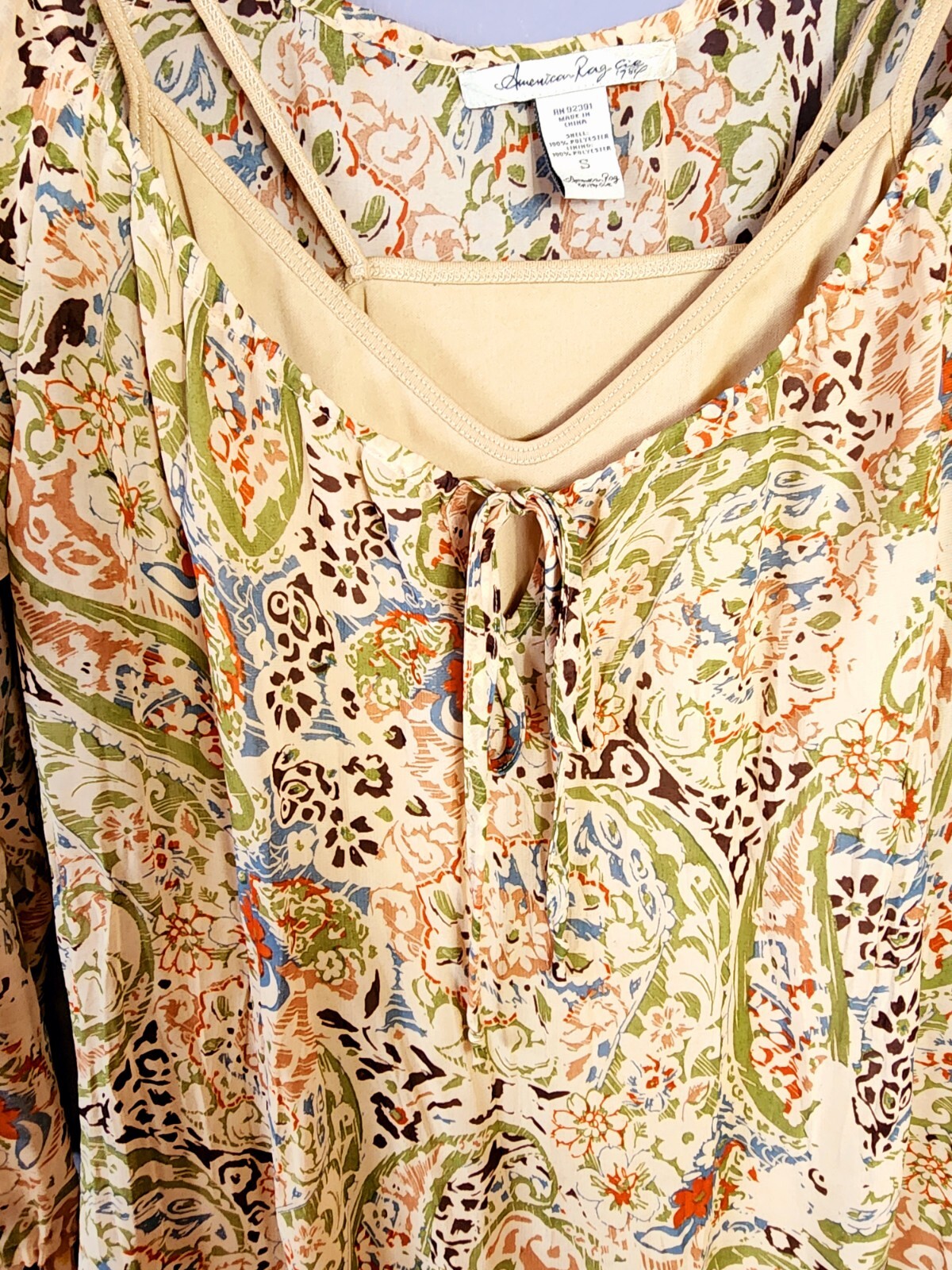 American Rag Cie Floral Paisley Print Dress Size Small Semi Shear shift overlay W/ Slip Excellent Pre-owned condition No visible flaws See pics for condition Flowy Y2K Western boho hippie coquette