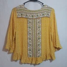 Rose & Thyme Yellow Floral Boho Peasant 3/4 Sleeve Women's Top Size M Brighten your wardrobe with this charming yellow floral top. Perfect for any casual outing. 3/4 sleeve V neck Lightweight Gently worn light wash wear approximate measurements pit to pit 18" length 21"