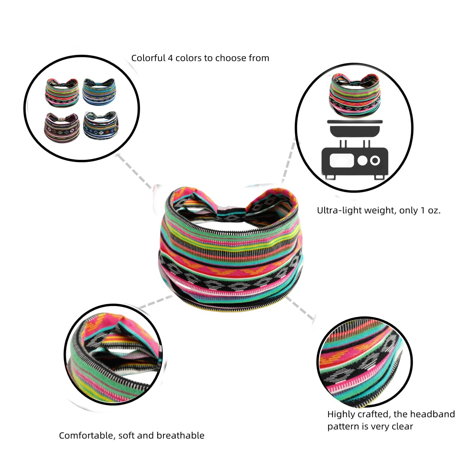 Features:. The Beautiful Hairband Size: Hair accessory length 24cm/9.45in, width 14cm/5.5in, the hair band adopts high-quality elastic head band Excellent Gift: You can share these headbands with family, friends, etc. On birthdays, anniversaries, Valentine's Day or any other holiday, it is a good choice to give them a headband as a perfect gift. Specifications: Material: multiple color options (4PSC) Product length: approximately 9.45 inches / 24 cm Weight: approx. 120 g/4.23 OZ Color: as pictures shown Package includes: 4 pairs of bohemian headbands Warm notice: Please allow measurement error. The colors may exist slight difference due to different screen 4 VALUE SET - 4 unique bohemian print hair bands can be worn any way you want, value set to match your fashionable outfit. SOFT & COMFORTABLE - The Boho Hair Accessories are made of polyester and spandex fabric that is soft and comfortable and absorbs sweat without headache. Quick-Drying, Breathable, Comfortable To Wear, Washable. SIZE - This women's headband is about 5.9 inches wide and 9.4 inches long, stretches up to 15.75 inches and has enough stretch to fit most head sizes. MULTIPLE WAYS TO WEAR THEM - You can wear the bow part in front, the wider part to hold your hair up from your neck, or just in the back to cover your forehead. EXQUISITE GIFT: Delicate and cute bohemian print headband makes you more stylish and elegant.Feel free to mix and match these personalised headbands. This is a beautiful gift for mums, wives, girlfriends, friends and others on birthdays, anniversaries, Mother's Day or other important holidays.