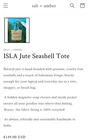 Salt + Umber Isla Jute Seashell Tote Boho Fringe NEW WITH TAGS original $149 This Salt + Umber Isla Jute Beach Seashell Tote is the perfect accessory for your boho look. With a spacious 16 in x 13 in size, this large tote is handmade in India with Canvas and Jute exterior material. The bag features a Magnetic closure, Lined interior, and Khaki Lining Color. The Seashells accents on the bag give it a unique touch and make it a perfect fit for a beachy look or bohemian look. Excellent condition, new with tags