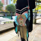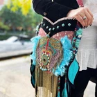 Description: Elevate your style with this Limited Series Artisan Shoulder Bag , a true statement piece that seamlessly blends bohemian charm with luxury craftsmanship . Meticulously handcrafted from genuine leather and cowhide , this bag is adorned with intricate beadwork , t urquoise stones, and feather accents , creating a design that is both exotic and timeless. The spacious body offers functionality, while the long fringe and detailed embellishments add movement and a touch of flair. With its one-of-a-kind artisan finish, no two bags are exactly alike, ensuring your accessory is as unique as you are. Key Features: Dimensions : 12.5" W x 12" H x 3" D (fringes extend length to 22") Material : Premium genuine leather & natural cowhide Design: Hand-beaded detailing, turquoise stones, feather embellishments Strap: Comfortable shoulder strap Closure: Secure zipper closure Handmade : Each bag is individually crafted, limited production. Style: Boho, Western, Festival, Artisan Why You’ll Love It: This bag isn’t just an accessory, it’s a wearable work of art . Perfect for festivals, casual outings, or adding a statement to your everyday look, it embodies freedom, creativity, and individuality. Condition: · Brand New