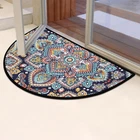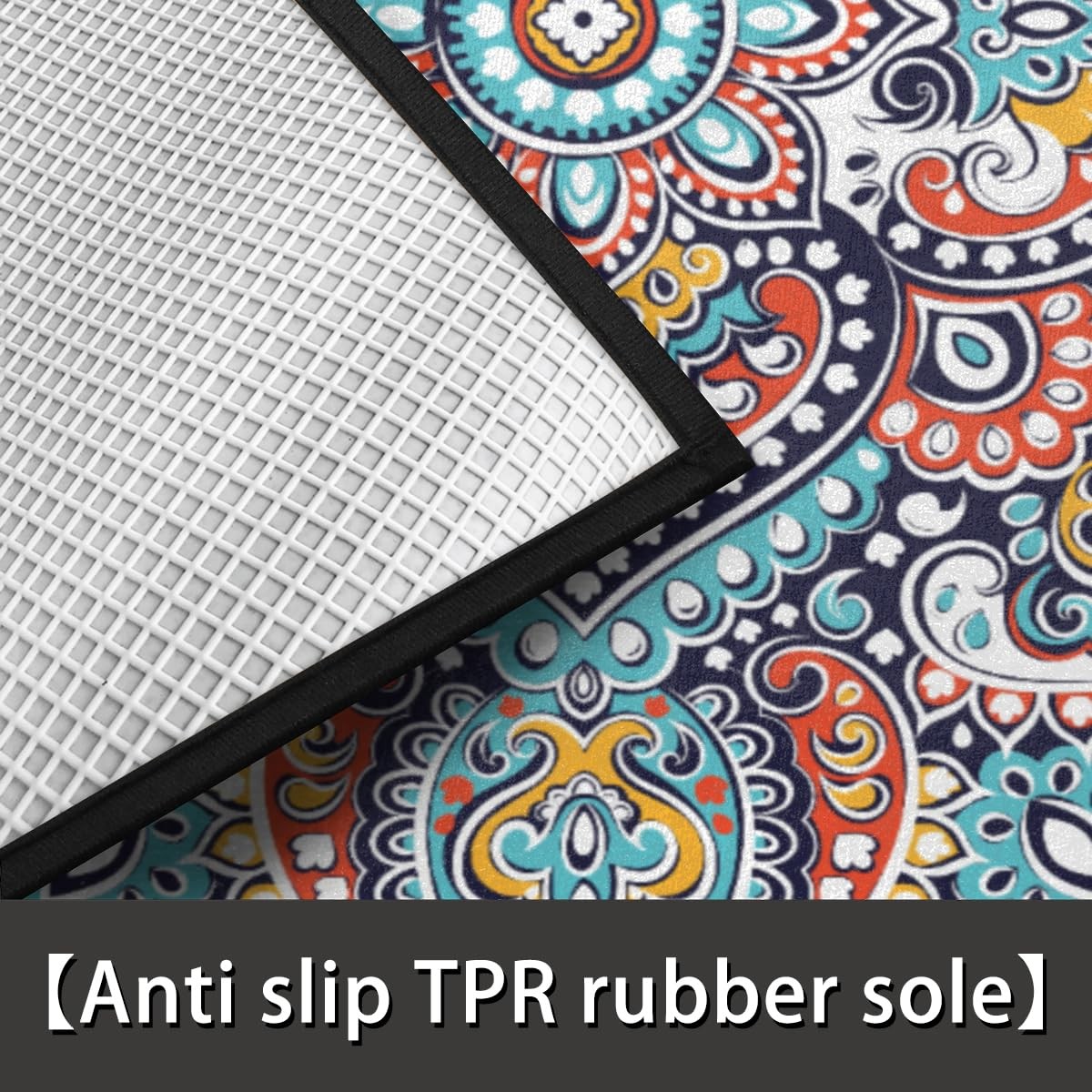 Half Round Door Mat Non Slip Half Circle Rug Indoor Floor Mat Welcome Mat Size: 36x24inch, half round area rug for front door kitchen bedroom bath room indoor outdoor entrace Features Absorb Water, Stain Resistant, Wear Resistant, Non-Slip, Non Fading, Anti-Fatigue, Home Decorative Semi Circular Rug Good Quality Soft and durable polyester material, interlayer is high density space elastic cotton, bottom is dot plastic backing, comfortable half round door mat relief your pressure of feet from the hard floor. Low profile half moon rug, good for indoor high traffic areas, easy to clean for everyday use. Decorative Semicircular Door Mat Colorful and designed entrance mat easy to match home decor, it is a thoughtful gift for your mother, girlfriend, relative on Thanksgiving Day, Christmas or other events. Tips Package: 1xHalf Round Door mat The rugs is folded to delivery due to the shipping volume limitation, there are lightly crease when you received it, please turn it over where there is a crease, and then slowly pull the carpet back while applying downward pressure on the crease, it will quick recover in few days. Please allow 1-2cm error due to manual measurement, and slight color difference due to computer display. If you have any questions about our products, please before purchasing. We will then answer you patiently. 【DURABLE MATERIAL】: Our BOHO door mats boast 100% high-quality, all-natural rubber construction, Not only are they eco-friendly, but they're also safe. Unlike cheaper alternatives, our mats are designed to last significantly longer. The natural rubber bottom and raised pattern non-slip backing ensure firm grip on both indoor and outdoor surfaces. With our mats, you can rest assured that your pets and children can play safely without slipping or scuffing floors. 【Size&Material】: Our half circle rug size 24"x36",half round area rug low-profile design ideal for low-clearing doors or entryways, won't stuck the door; Our interior door mat is made of high-quality polyester fabric to keep moisture, dirt, debris and mud out of your home; This multipurpose doormat is durable that ensures the color will not fade, even in sunlight. They are made in more stylish colors and patterns to match any décor, making your home more cute and modern. 【WIDELY USING】: Our ultra thin indoor entrance door mats is great as rug for bedroom, living room carpet, dinning room rug,dorm room rug,soft area rug,half circle bath mat 【Home Decoration】: Our half round door mat has exquisite and unique patterns, perfect for indoor use, such as boys room, girls room carpets, kids carpets, living room, bedroom, playing room, study room, dorm etc 【Easy to Clean】: Our half circle door mat simply vacuum with a hand-held vacuum, sweep with a broom, or shake off outdoors or over your garbage bin; For a deeper clean, machine washable in cold water with mild detergent, or use a garden hose to rinse the mat outdoors. Special Note: For the convenience of logistics and transportation, the mats will be folded and shipped. Customers may have creases when they receive it. After leaving for 3-5 hours, the creases will disappear.
