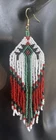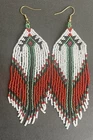 1 pair of long white, green and red seed bead beaded earrings. You will receive earrings pictured. The earrings are made with seed beads. The earrings are approximately 5 1/2" long with the ear hooks included. They are for pierced ears. 0-ea-seed-099-1