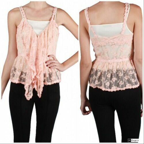 Add feminine intrigue to looks of every kind with this sheer lace top. With a full draped collar complemented by a narrow waist and sweet peplum, this lightweight layer is sure to charm. Size SMALL Body: 100% polyester Contrast: 100% cotton Dry clean Imported Bust... Approx 15" from armpit to armpit. Length... Approx 14.5" from armpit to end of top. Victorian / layering tank top / vintage lace / bohemian / boutique color may vary depending on flash/filters/computer monitor