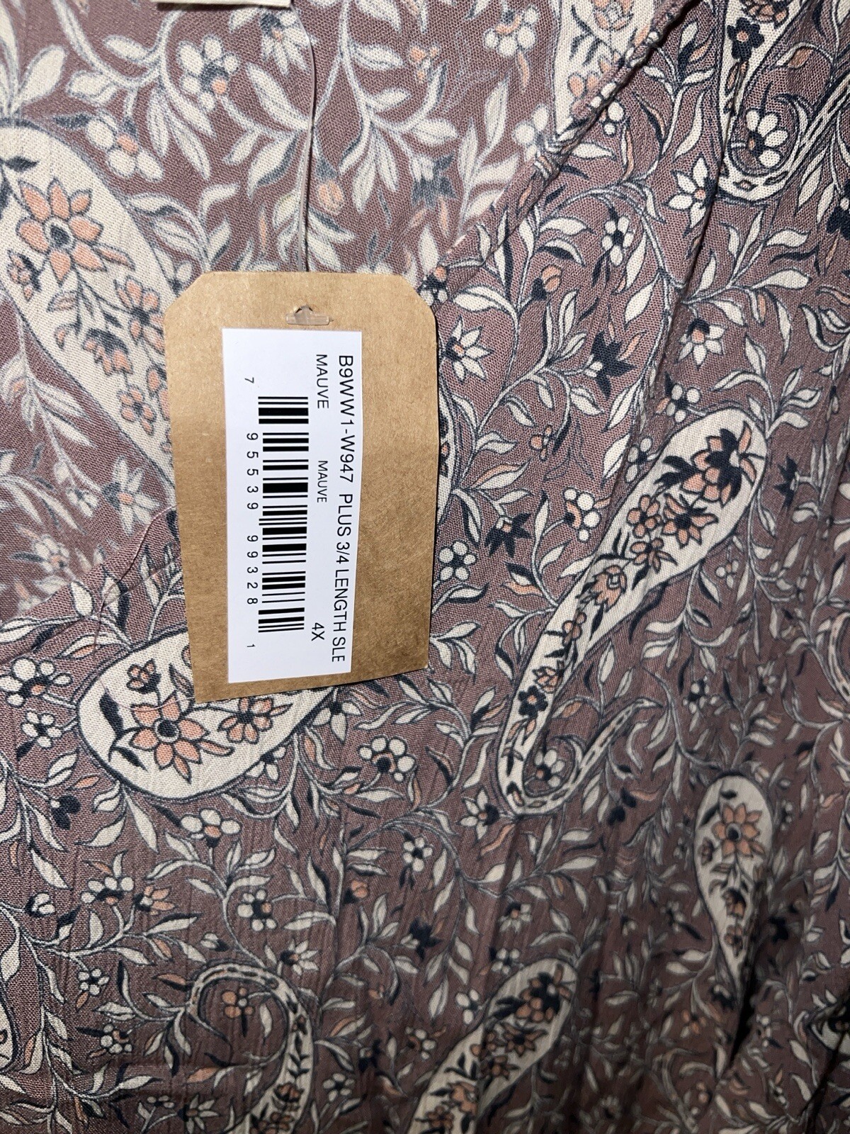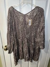The Romantic Gypsy Women's Plus Size 4XL Lace Inset V-Neck Top is a stylish and romantic blouse made from rayon material with lace insets. It features a flattering V-neckline and 3/4 sleeves, perfect for adding a feminine touch to any outfit. The multicolor design and tunic style add a bohemian flair to this top, making it a versatile and eye-catching piece for any woman's wardrobe. Pit to pit 31” Shoulder to hem 31”