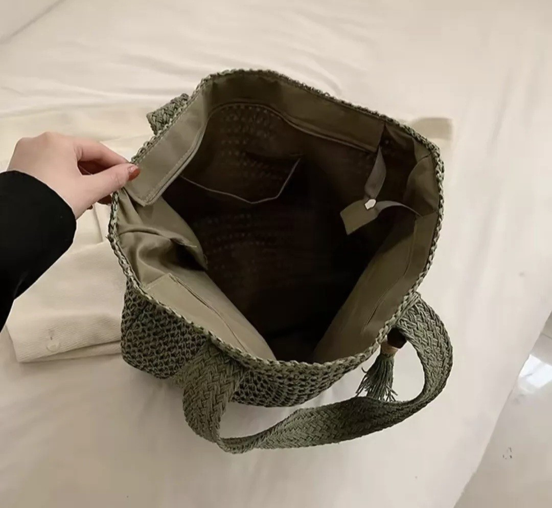 Large Woven Straw Handbag Boho Summer Bag Luxury Beach Bag Tote Bag Rattan