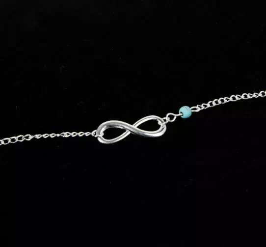 Infinity Love Symbol Blue Beads Boho Silver Anklet Ankle Bracelet Foot Chain 100% brand new and high quality anklet Material: Alloy Color: Silver Plated Main Stone Color: Blue Package Included: 1 x Anklet
