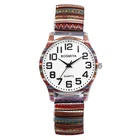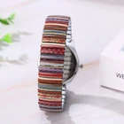 This boho wristwatch is a stylish and comfortable accessory! The colorful elastic band stretches easily and fits perfectly, while the big white dial makes it super easy to read. The stainless steel case and metal bezel give it a durable yet elegant look. Lightweight at just 1.75oz, it’s great for all-day wear. Plus, it comes with a cute blue velvet gift bag—perfect for gifting or keeping for yourself! Love the quartz movement for accurate timekeeping. A must-have for any boho fashion lover!