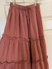 Darling brand new $30 tag This Maxi Skirt in Petal Pink Mauve is perfect for those who love a boho, gypsy-inspired look. The tiered design and drawstring closure add a touch of whimsy, while the elastic waist ensures a comfortable fit. Made from soft rayon knit fabric, this long skirt is ideal for various occasions such as travel, weddings, parties, or even casual wear. The color and style are versatile, making it a great addition to any wardrobe, whether you're going for a nature-inspired or festival-themed look. Elastic waist starts at 24", easily to 30 37" long Please see all photos I combine for shipping savings everyday :) Smoke Free Pet Free