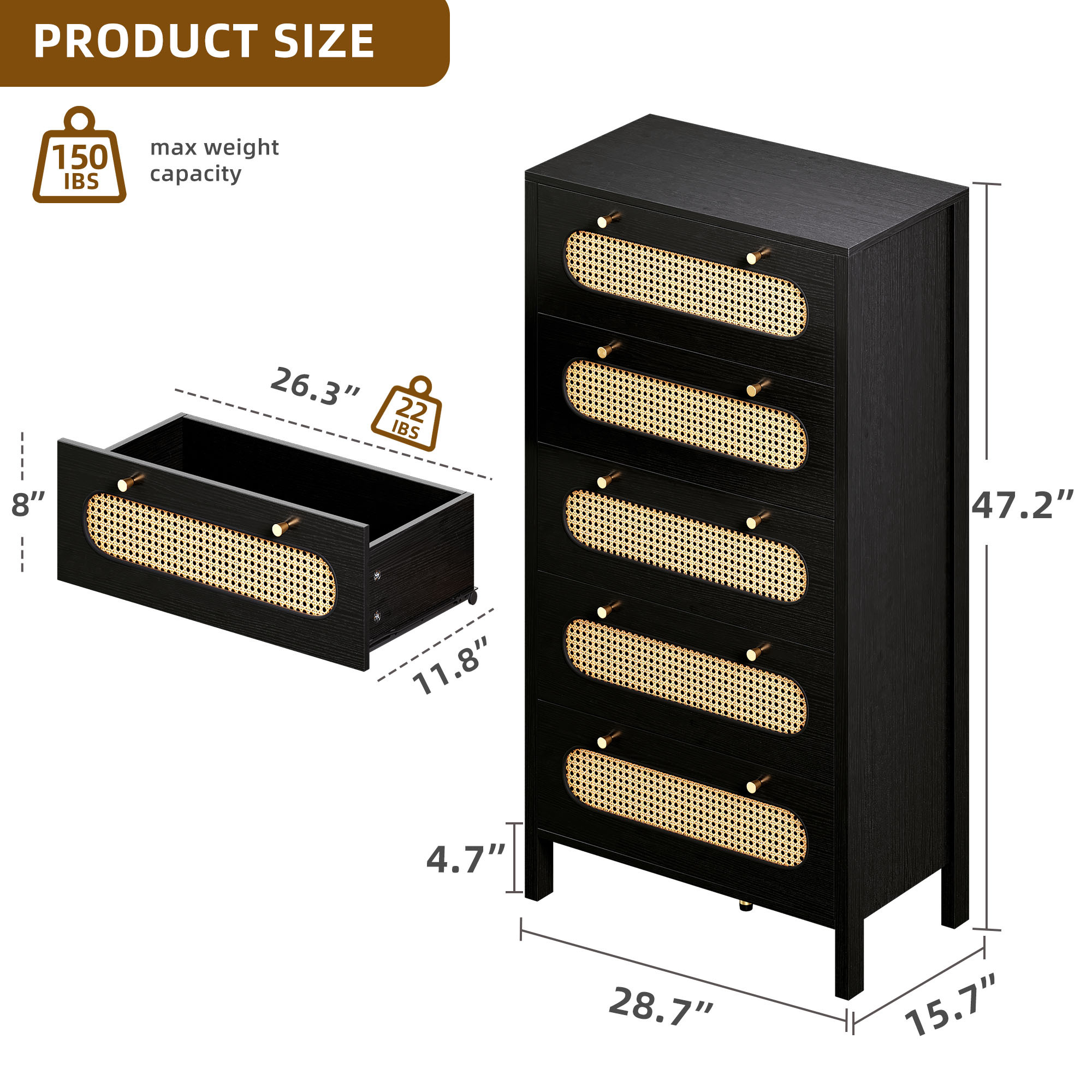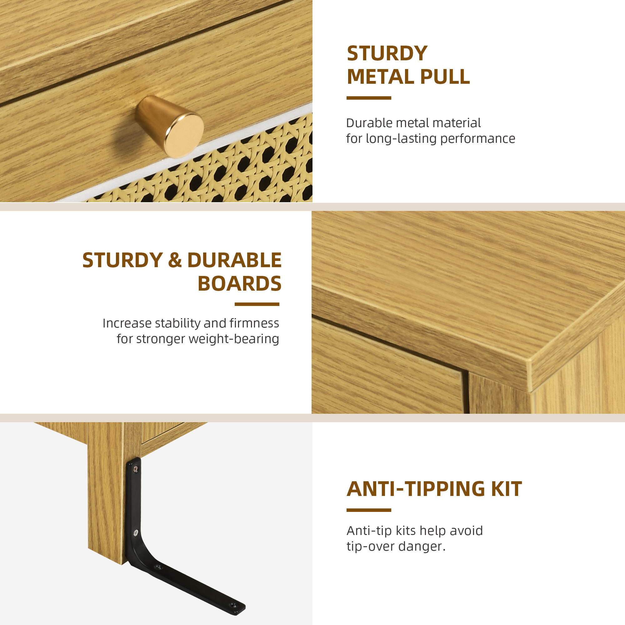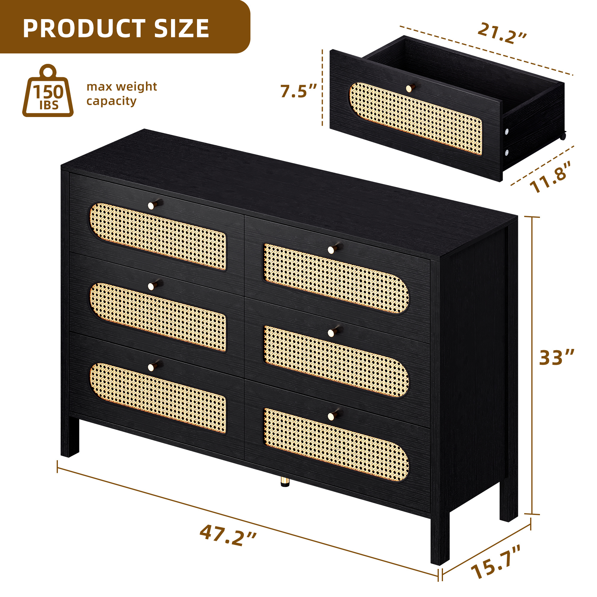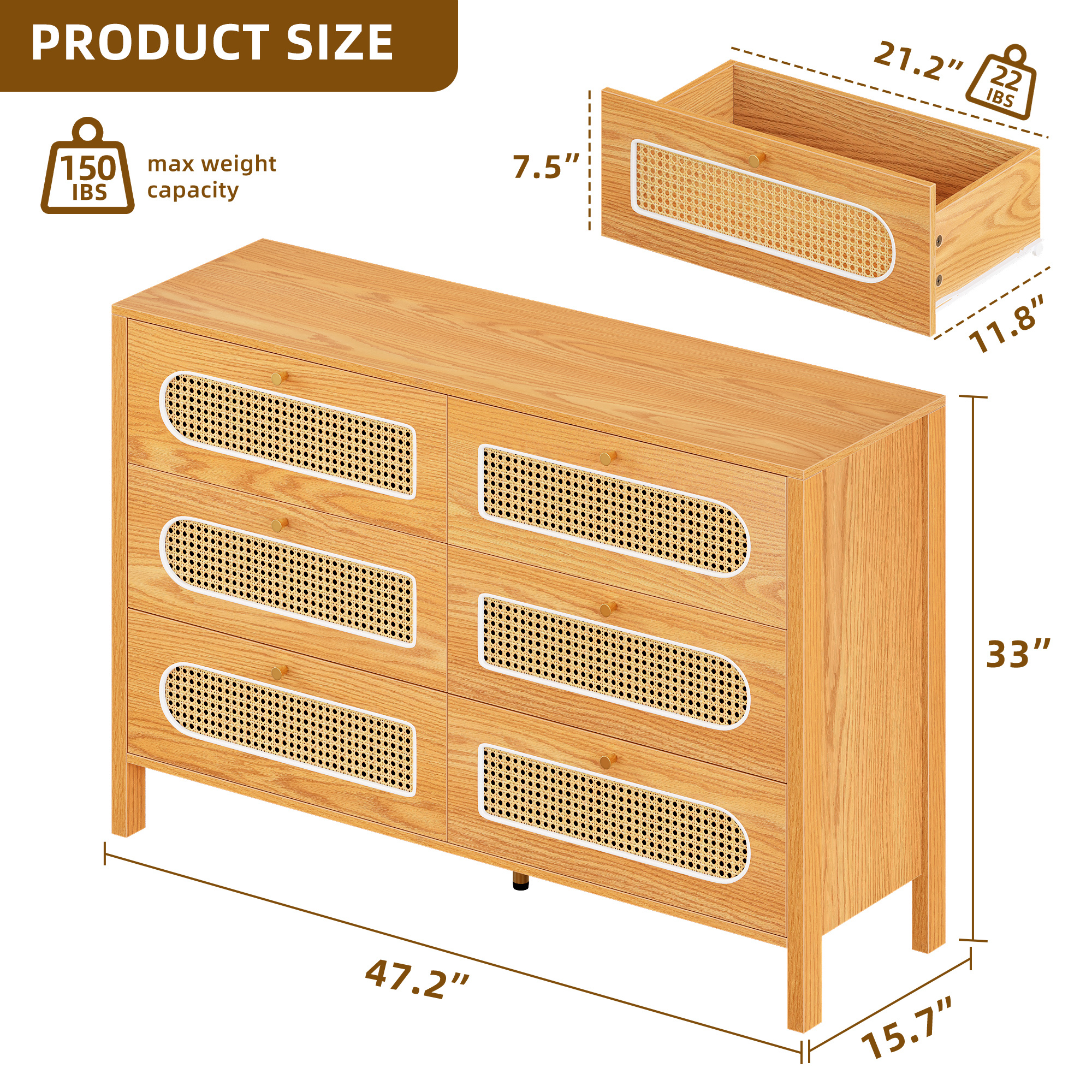 Wooden Rattan Dressers Chest of Drawers Closet Boho Storage Cabinet for Living Room/Hallway/Entryway/Bedroom Item Description: Features: The boho rattan dresser features a natural rattan weaving and golden handles, which enhance its visual appeal and create a warm, inviting atmosphere, making it suitable for various indoor styles. The breathable octagonal hollow rattan door adds a unique touch to the design, making it a versatile piece that can complement any decor. The rattan wood chest of drawer dresser comes with a paper version manual and accessories, providing step-by-step and numerical illustrations to guide users through the assembly process, alleviating any worries or concerns. The dresser's construction allows for easy assembly, ensuring a hassle-free experience for customers. The natural rattan material used in the dresser's construction allows for enhanced breathability, making it a practical and functional addition to any living space. Package Includes: 1 x Rattan Wooden Dresser 1x Installation Manual More Display: Shipping ● The shipping rates listed are only for residential or commercial destinations in the continental 48 United States. All international sales will go through eBay Global Shipping Program.please ask us if there are any questions. ● We only ship the item to the address that is sent to us at the time of checkout. Please verify the correct shipping address in your PayPal account before making your payment. If we ship your item to an old or invalid address and you are not able to locate the item, we are not responsible for shipping a replacement. ● Currently, we do not ship to Hawaii, Alaska, Puerto Rico,APO/FPO/PO Boxes. ● We use USPS, UPS & FedEx as shipping method. ● Payments cleared before 12 PM PST, will be shipped on the same day. Payment ● We accept PayPal and all forms of credit card. ● We will only ship to the confirmed Paypal shipping address given with the payment. ● We do not offer local pick up service. Return ● 30 days Money Back Guarantee. ● If any package that needs to be returned, please contact our customer service first to receive a RMA form. ● All return items MUST be in brand new condition. About Us ● Specialized in aftermarket auto parts since 2012, we source and work directly with professional manufacturers to provide the highest quality parts at the most economical prices. ● We also has over 5 years of shipping experience with FedEx and USPS . Our Packing Quality is Guaranteed , Item Ship-ping is timely! On Jun 16, 2023 at 05:48:44 PDT, seller added the following information: On Jan 14, 2025 at 20:11:16 PST, seller added the following information: On Feb 24, 2025 at 19:42:43 PST, seller added the following information: