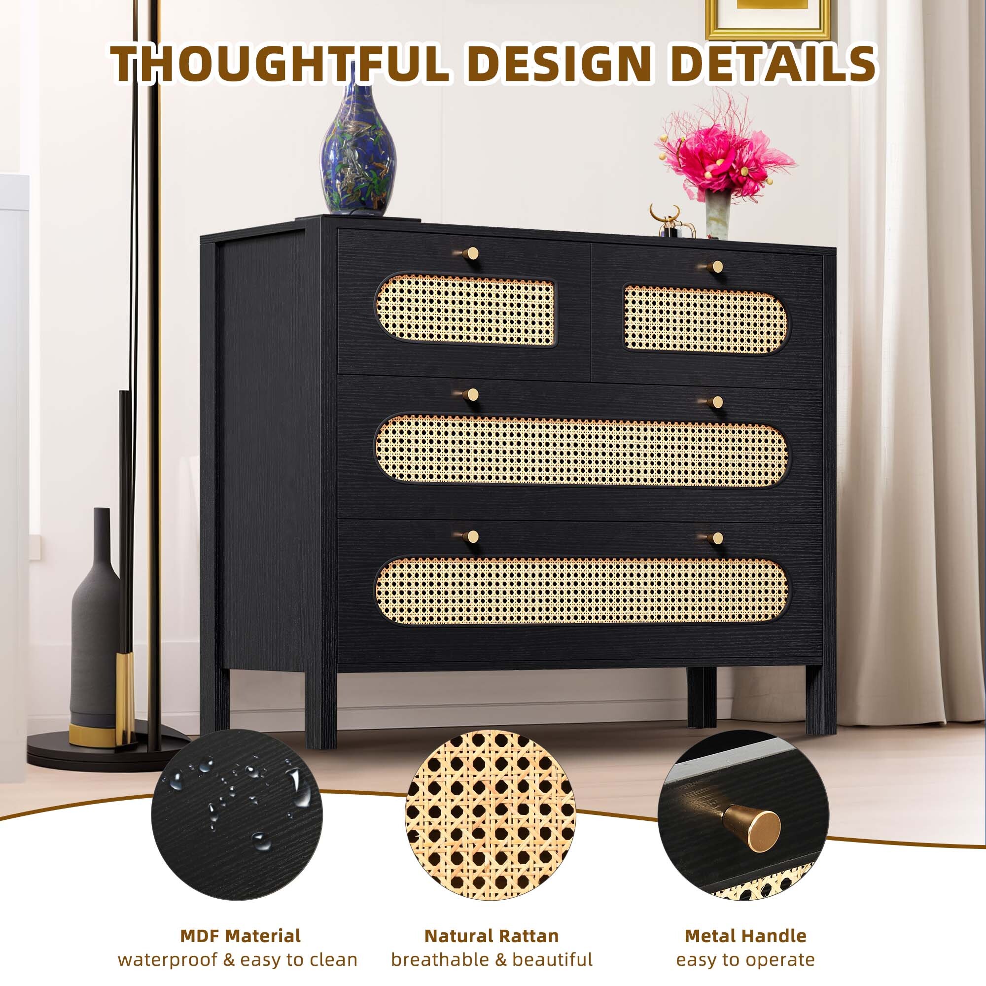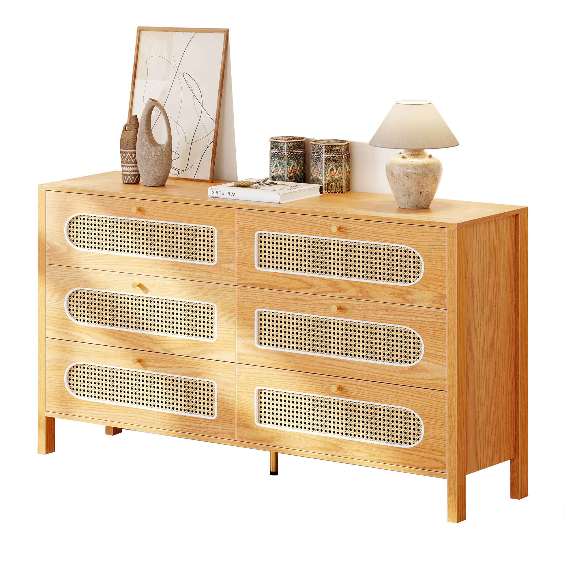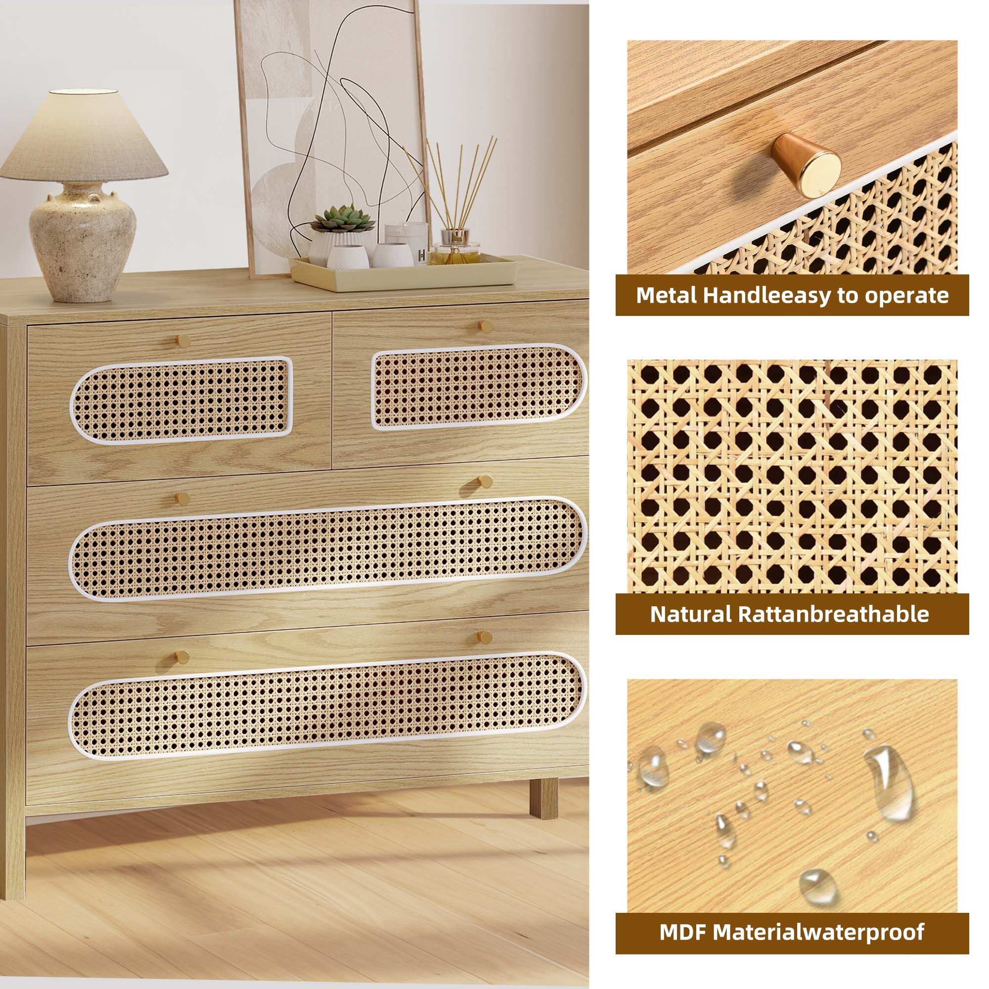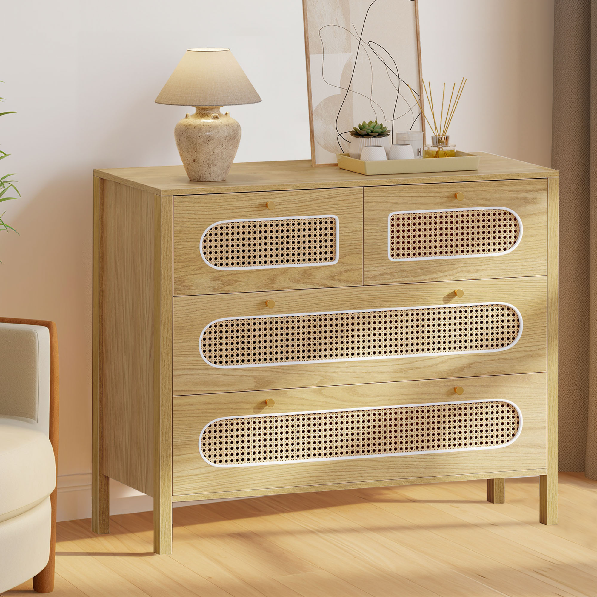 Love the boho charm of this dresser! The natural rattan weave and gold handles add a cozy, stylish touch to any room. Super functional with spacious drawers and that breezy hollow rattan door—perfect for bedrooms, hallways, or living spaces. Sturdy, great quality, and instantly elevates the vibe! Highly recommend for anyone wanting a blend of storage and boho flair. 🏡✨
