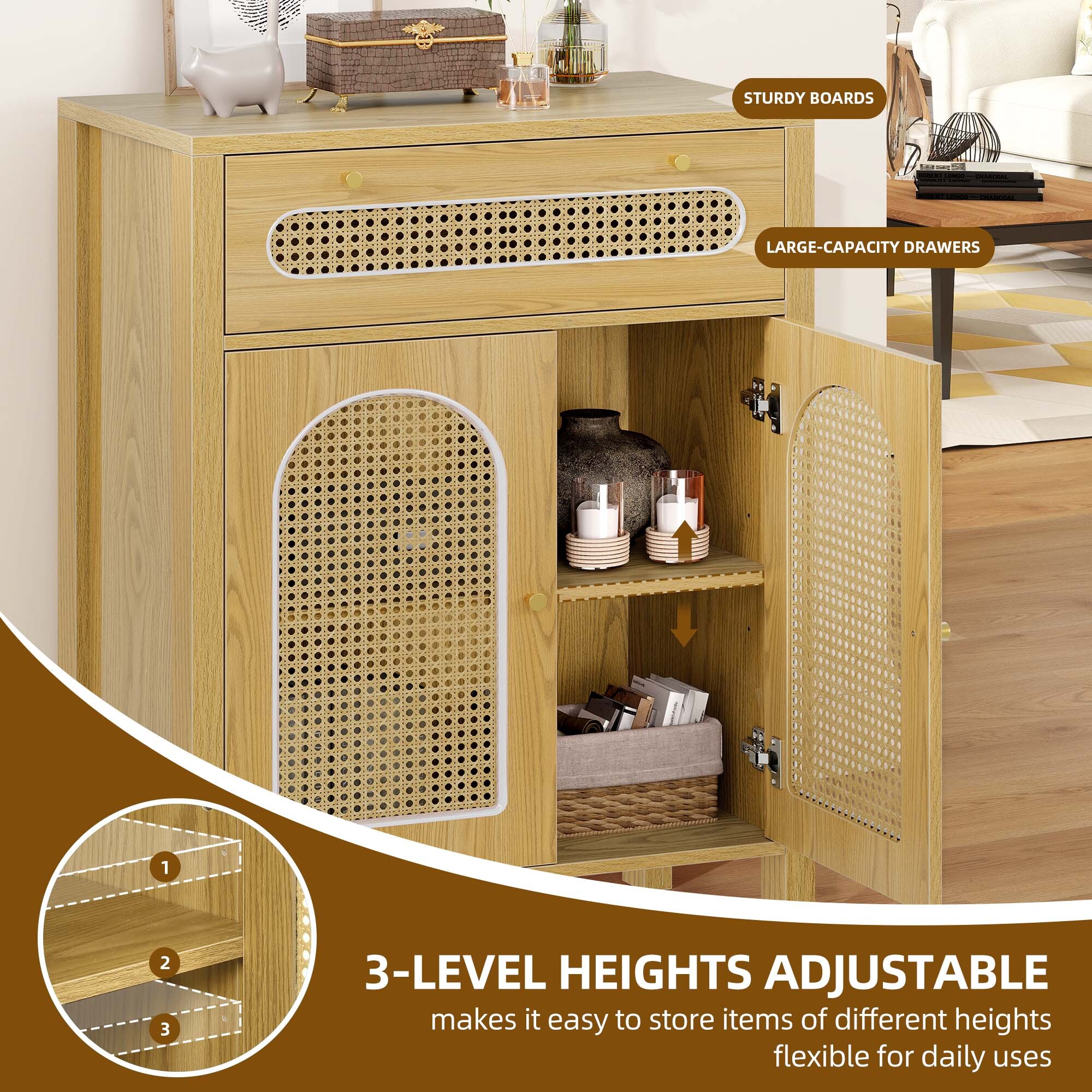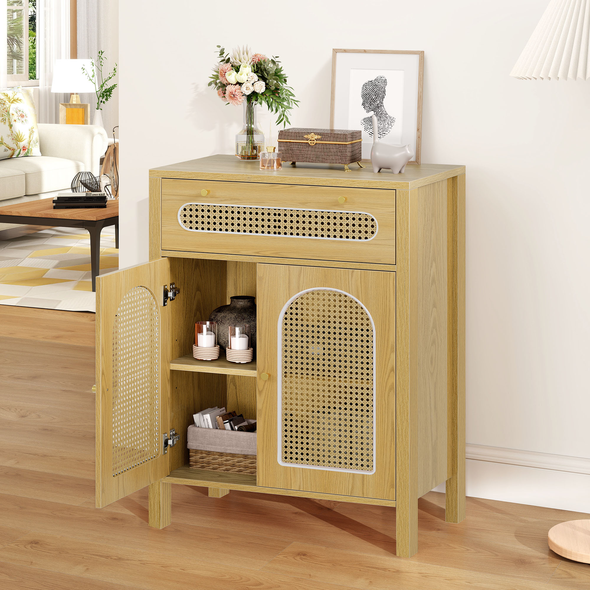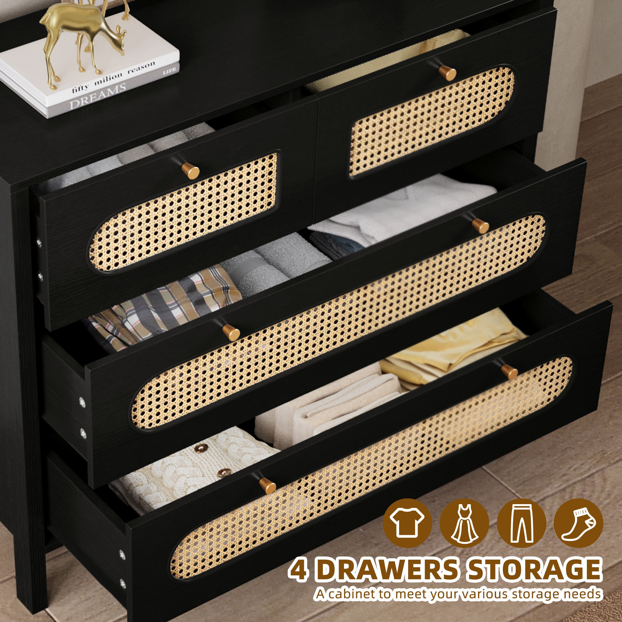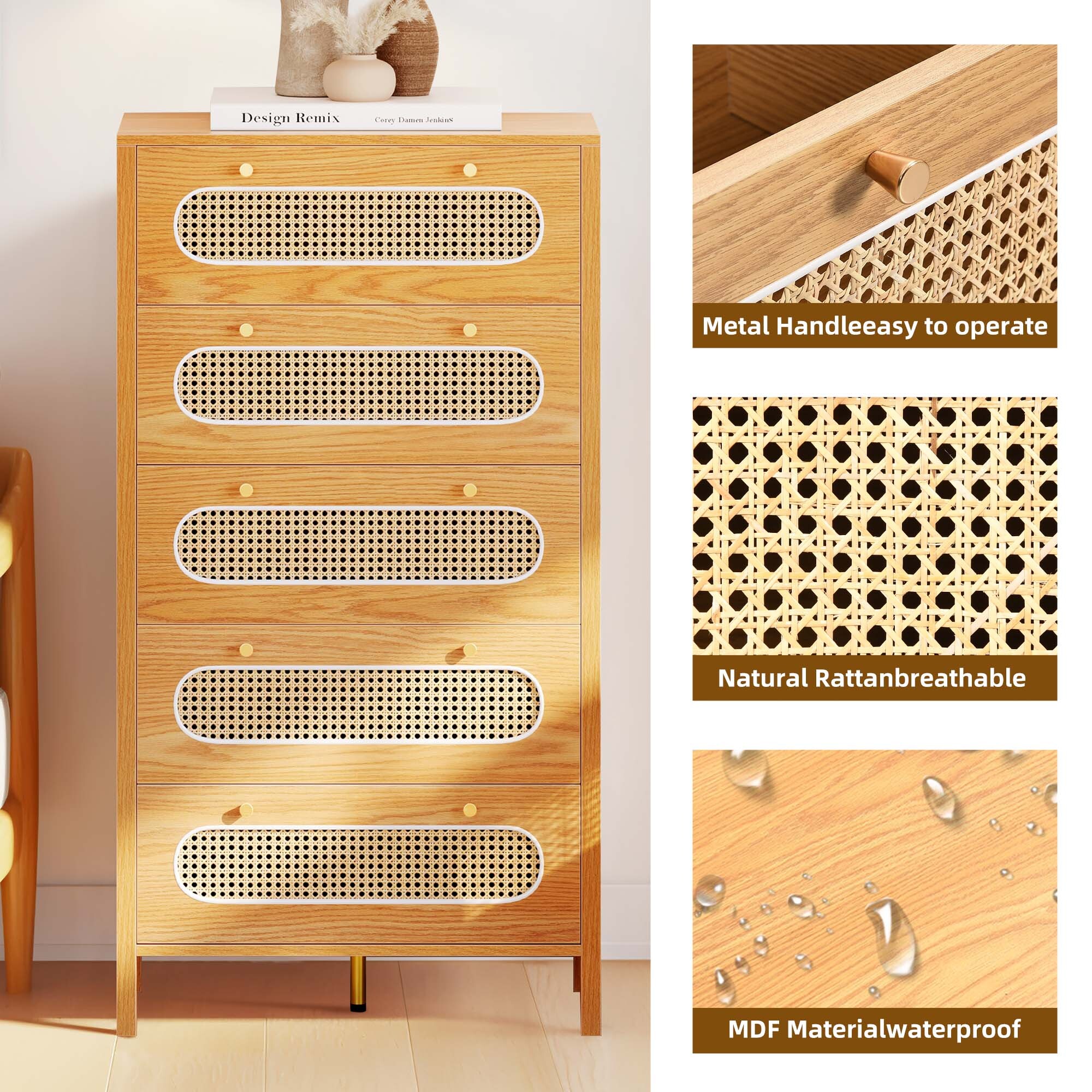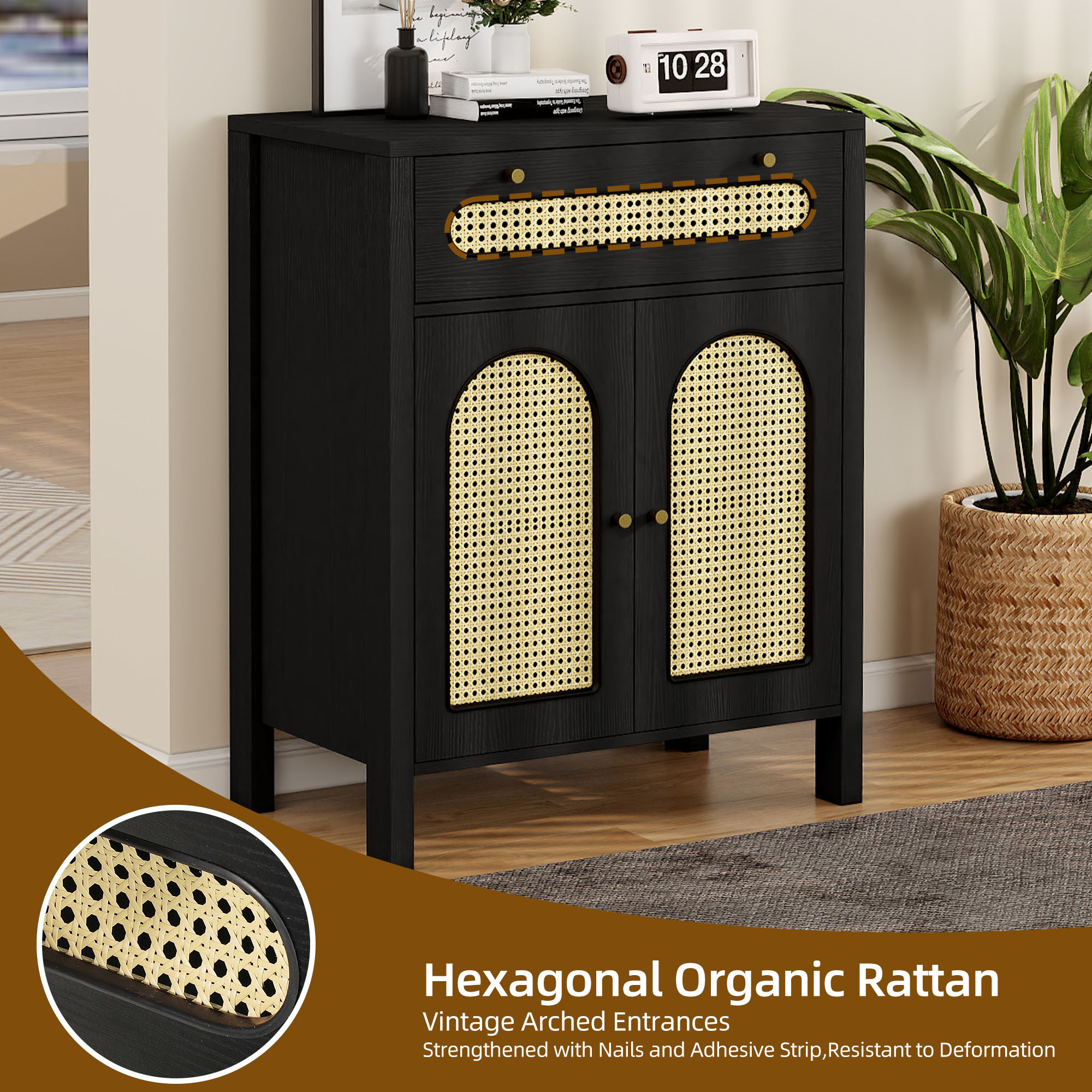 Love the boho charm of this dresser! The natural rattan weave and gold handles add a cozy, stylish touch to any room. Super functional with spacious drawers and that breezy hollow rattan door—perfect for bedrooms, hallways, or living spaces. Sturdy, great quality, and instantly elevates the vibe! Highly recommend for anyone wanting a blend of storage and boho flair. 🏡✨