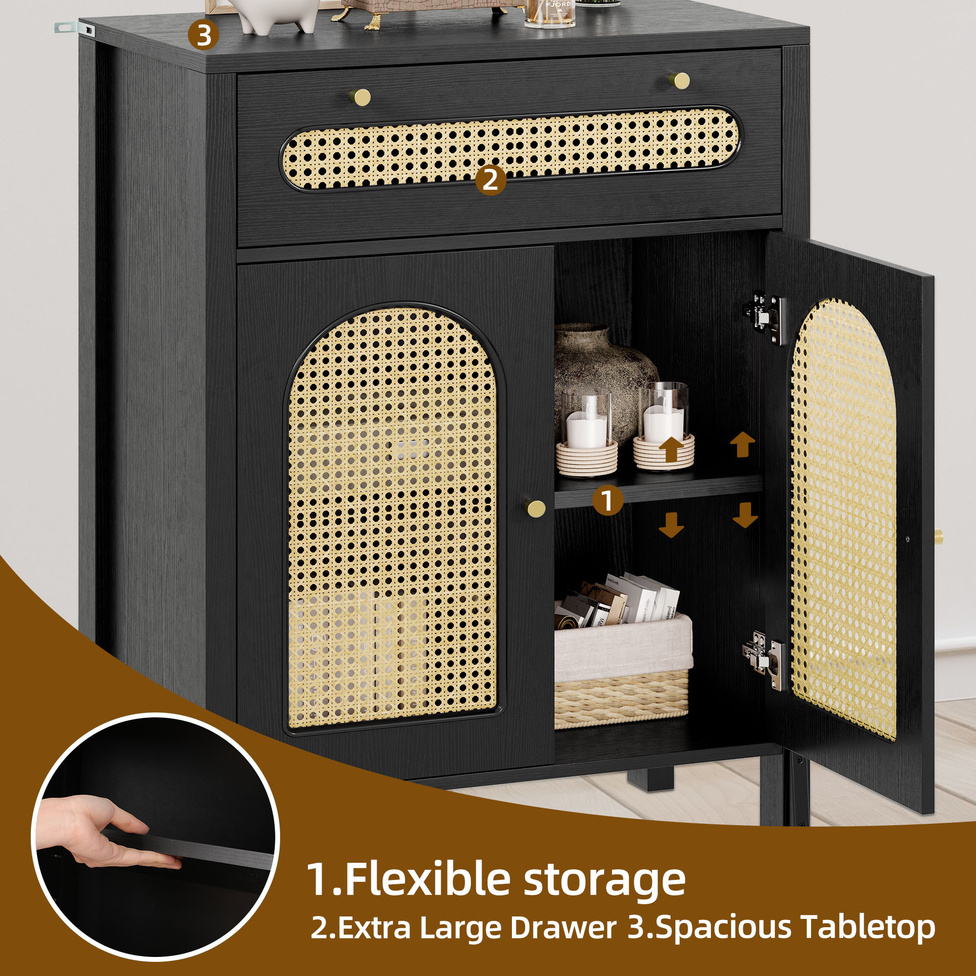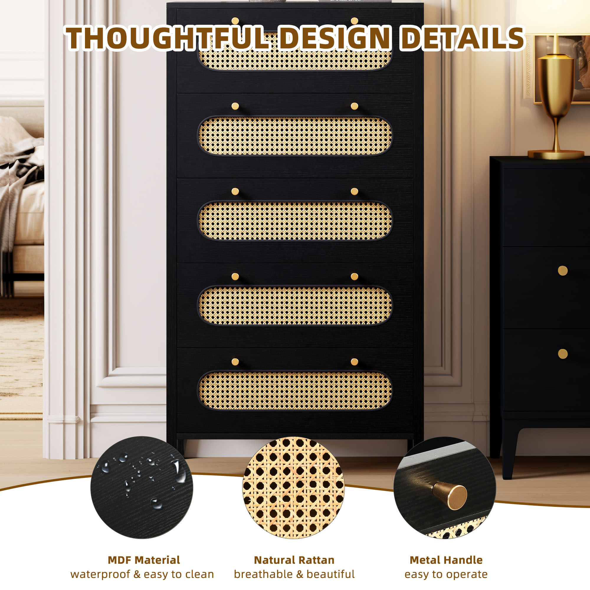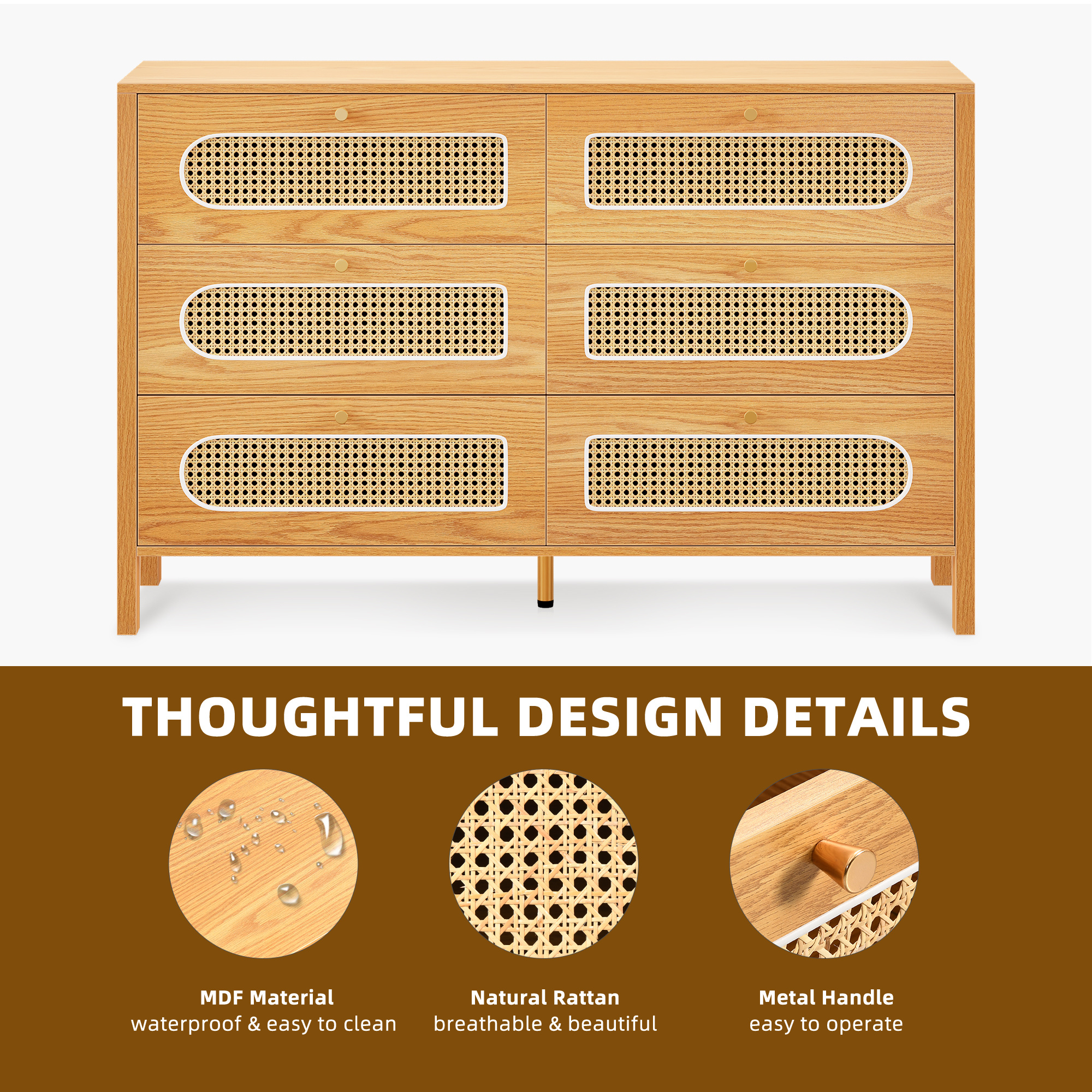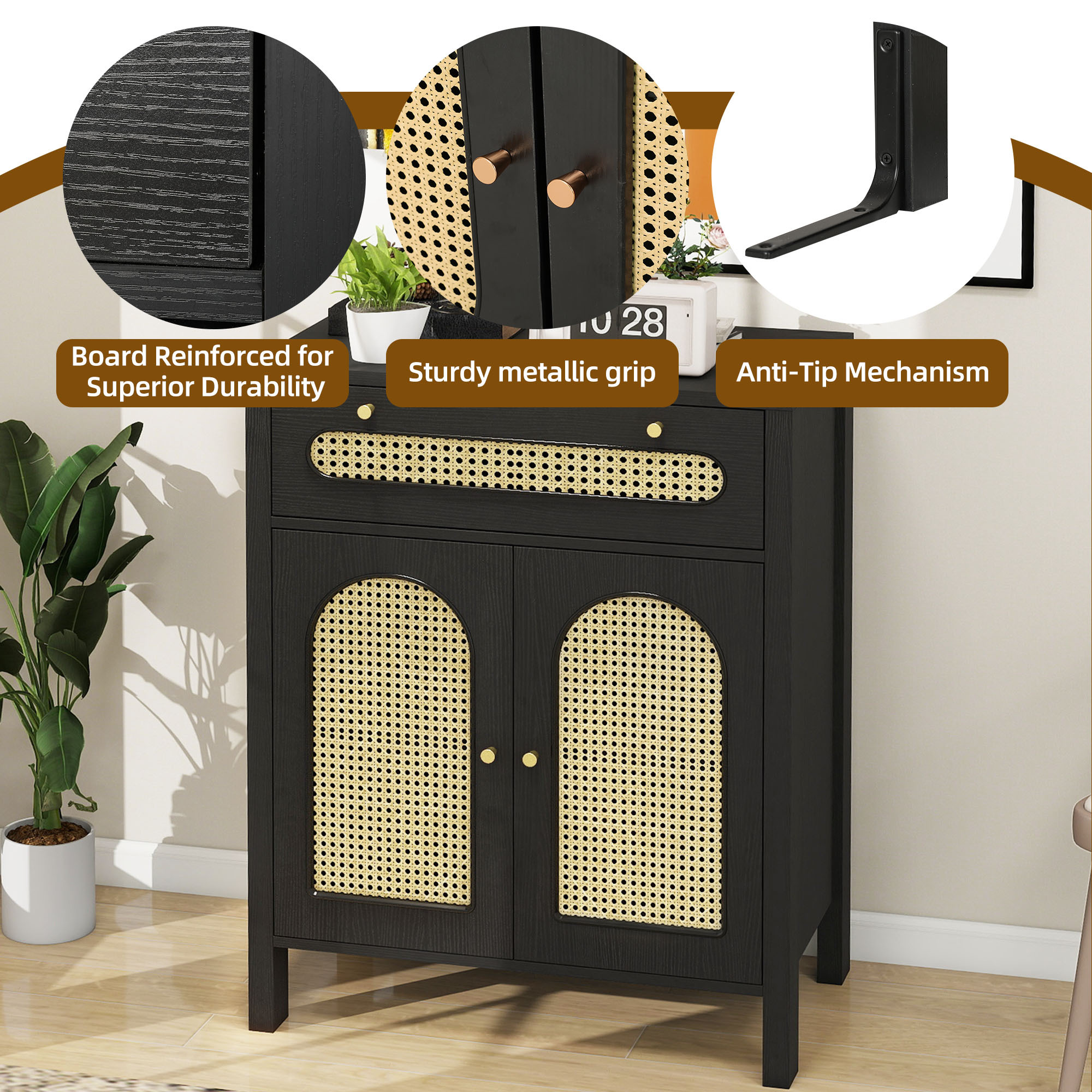 Love the boho charm of this dresser! The natural rattan weave and gold handles add a cozy, stylish touch to any room. Super functional with spacious drawers and that breezy hollow rattan door—perfect for bedrooms, hallways, or living spaces. Sturdy, great quality, and instantly elevates the vibe! Highly recommend for anyone wanting a blend of storage and boho flair. 🏡✨