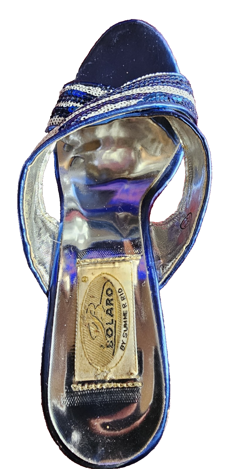 Bolaro heel women shoes size 7 color blue and silver