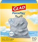 Let the stretchable strength of Glad ForceFlex handle all the messes our busy daily life can throw at it and then some. Glad Tall Kitchen Drawstring Trash Bags are designed with ForceFlex technology to give extra flex as it expands around sharp edges and heavy loads, so you can pack it in while resisting tears, rips and punctures. These trash bags are designed with two layers for extra leak protection. RipGuard and LeakGuard technology prevent seepage of liquids and keep trash contained. Fight nasty kitchen odors with the exclusive Glad trash bag combination of steady release of Febreze freshness and irresistible Gain Fresh Clean scent that traps, locks and neutralizes odors. The durable Grips The Can Drawstring ensures a tight grip on the trash can to keep it in place. Take the trash to the curb with no fear of leaks and tears, and no frustration. FEBREZE and GAIN are used under license from The Procter & Gamble Company or its affiliates.