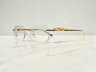 Brand: Bonano Model: Giaguaro Size: 54-18-140 Color: Gold :Handmade stainless steel construction plated in 18k gold :Handmade Jaguar adorns both left & right temple :18k gold plated metal frame inlay, temple and segments :Bonano Signature logo inlay inner right temple : Bonano CR-39 Non Prescription Clear Demo Lenses. :Comes with Bonano storage box, cleaning cloth, hard-case & frames + lenses :Frame Size 54-18-140 SHARE SHARE ON FACEBOOK TWEET TWEET ON TWITTER PIN IT PIN ON PINTEREST