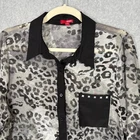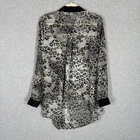Bongo Shirt Womens XL Animal Leopard Tunic Sheer Blouse High Low Witchy Flowy Pocket Button Collar Chiffon Gray Charcoal Black Cuff Accent Studded Roll Tab Long Sleeve EXCELLENT Pre-owned condition: minimal to no signs of wear, no stains or holes SKU 6791 **Please see all pictures for full item condition, details, and approximate measurements** - Ships Same/Next Day, Professional Seller, Offers Welcome, Like or watch for price drops - Item in photos is exact item you will receive - I list new items daily, be sure to browse my store/closet for more items - Bundle pricing and combined shipping available for additional savings - Feel free to send a message