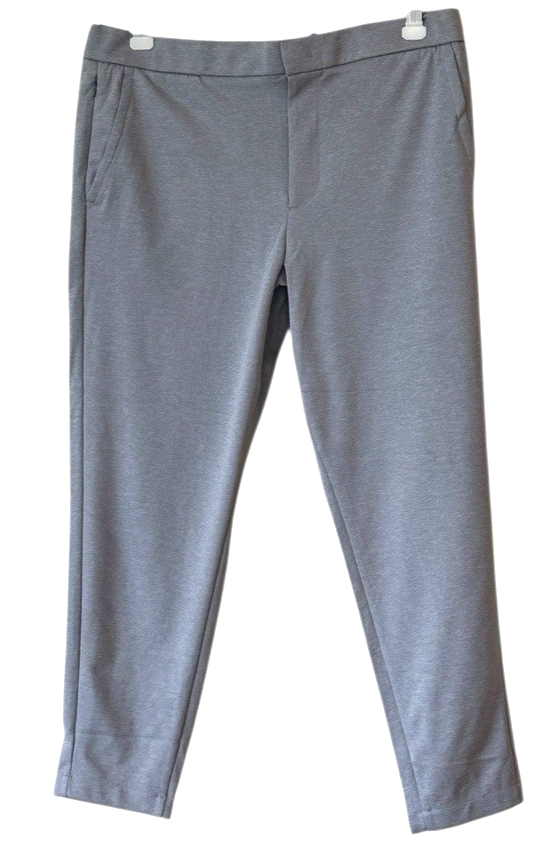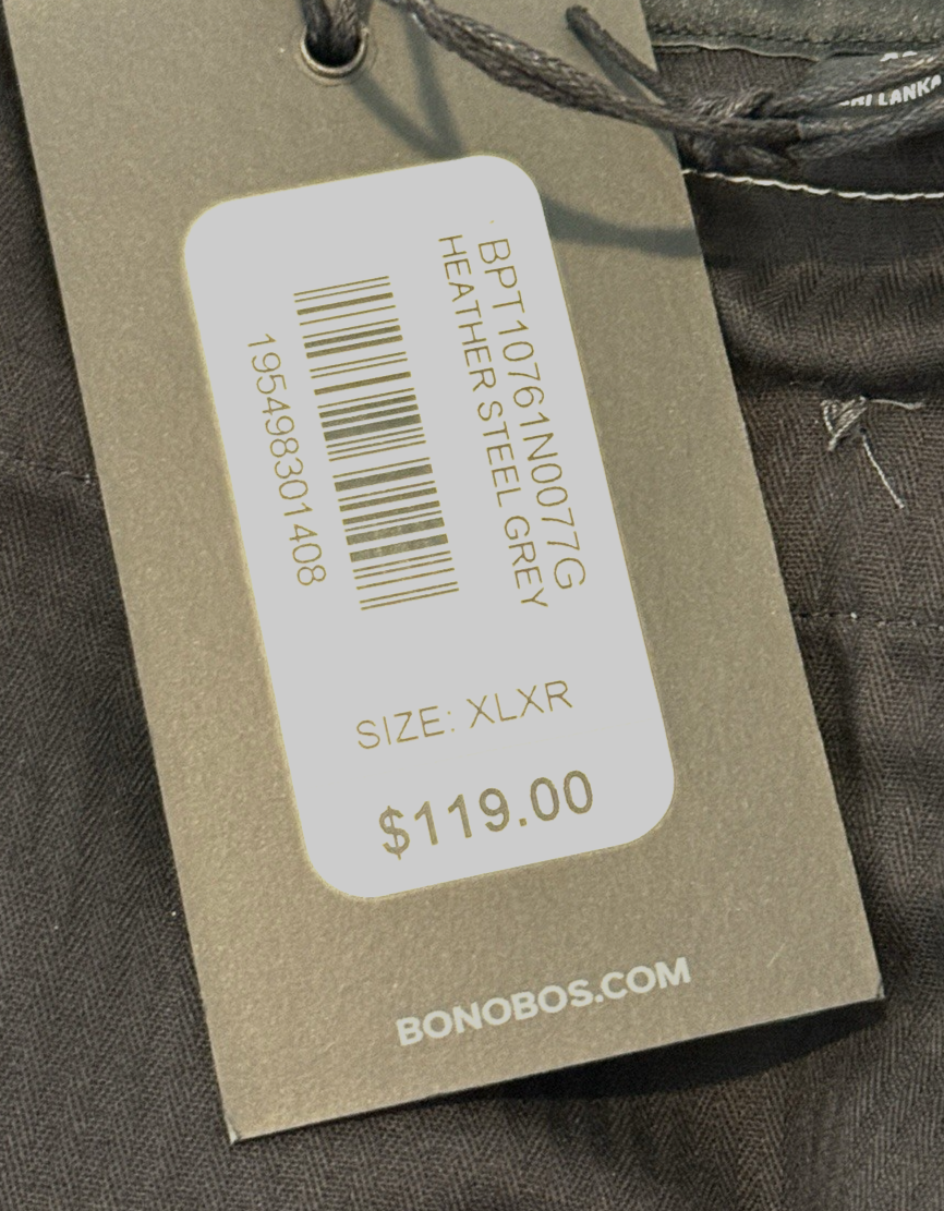 The Bonobos All Week Flex Pants in Heathered Steel Gray are versatile and stylish options for men looking for comfortable and practical clothing. With a tapered leg and mid-rise fit, these pants feature an elastic waist with a drawstring closure for a customized and secure fit. The knit fabric and polyester material make them suitable for various occasions, from casual outings to workwear. Additionally, the slash pockets, button and zipper accents, and gray color add a touch of style to these chino-style pants from the Bonobos Weekday Warrior collection.Has a drawstring in the interior for waist sizings. Ideal for men who appreciate both fashion and functionality in their wardrobe choices. - Size Extra Large Regular - Color Gray - New with tags. In original bag - Material and care tag in photo - Measurements approx laying flat Inseam 31" Waist 20" with drawstring to cinched. - Smoke free home