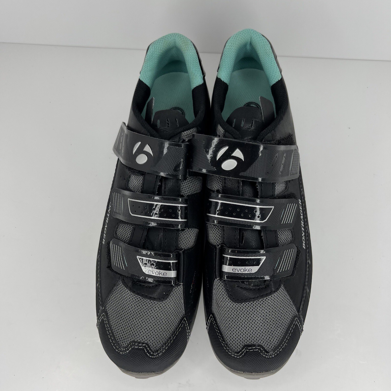 Elevate your cycling experience with these Bontrager Evoke Mountain Bike shoes , designed specifically for women. These shoes fit true to size with a standard width and feature hook and loop closures for a secure fit. The black synthetic upper material is both durable and stylish, while the 2-bolt cleat compatibility makes them ideal for mountain biking. Perfect for any cycling enthusiast, these shoes are great for both performance and leisurely rides. The sleek black design with gray accents ensures they will match any cycling outfit, making them a versatile addition to any cyclist's wardrobe. Order now to take your cycling to the next level! 100% CUSTOMER SATISFACTION IS OUR GOAL! Our items are always carefully examined for condition, measured if necessary, and photographed in a climate controlled and smoke-free environment. We make every attempt to accurately describe and clearly picture the items we have for sale. Please, ALWAYS view all of the photos. We value your business and our goal is your complete satisfaction. FAST SHIPPING All items are packaged with care and shipped out the same or next business day via USPS, FEDEX, or UPS with tracking numbers so you are always informed. RETURNS We offer a 30-day return policy. All items must be unused and unopened in the condition in which they were received, with original packaging, and all accessories included for return. REVIEWS - CUSTOMER SATISFACTION - COMMUNICATION We aim to make you happy. After you receive your shipment, please leave a positive review . If you have concerns or questions about your order, please contact us so we can resolve the issue. We will do our best to make you satisfied. THANK YOU FOR YOUR BUSINESS!