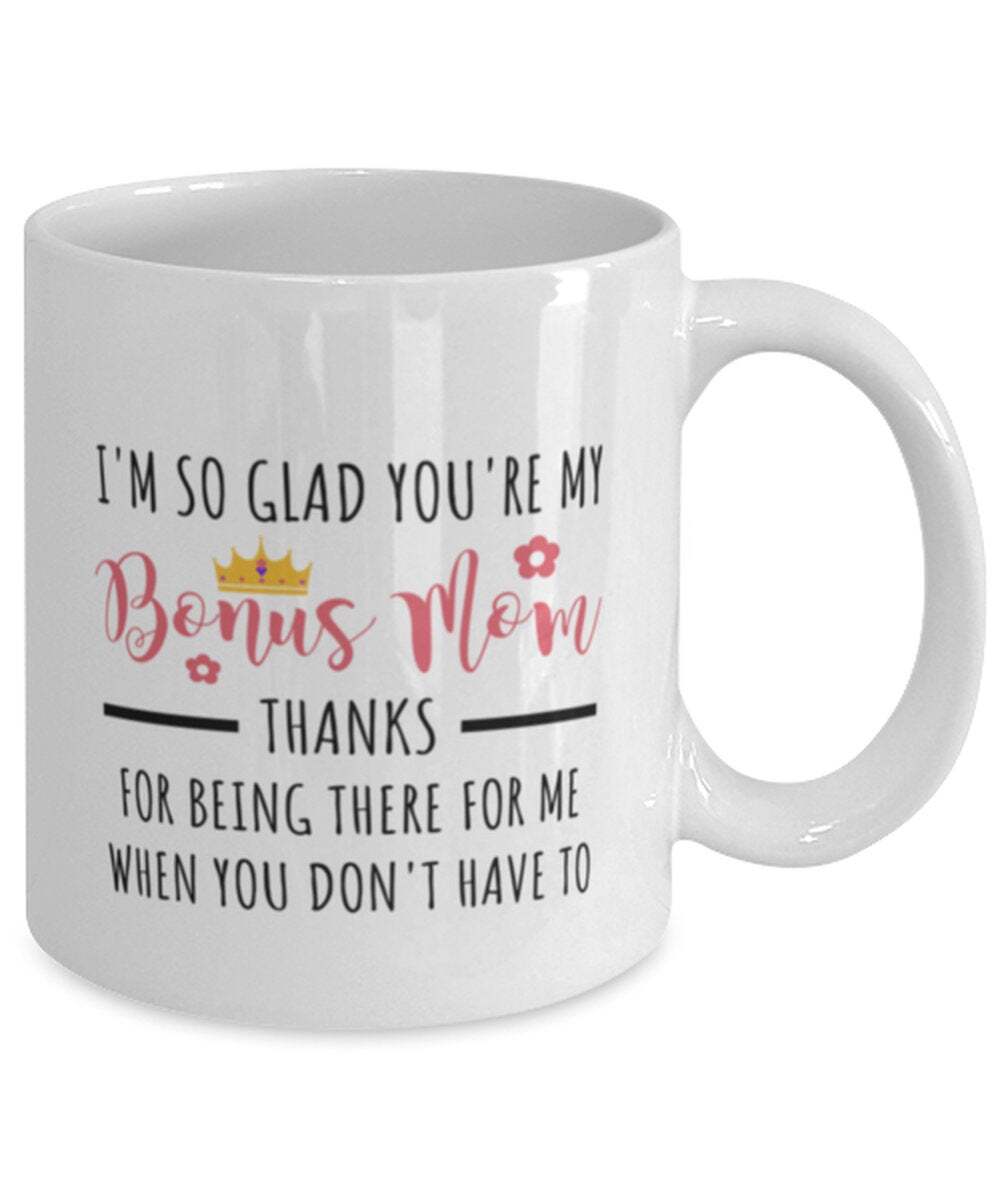 Mothers Day Mug Bonus Mom Mug Stepmom Mug Coffee Mug For Bonus Mom Mother Day Product Details.. This high quality 11oz. ceramic white mug has a premium hard coat that provides crisp and vibrant color reproduction sure to last for years. Perfect for all hot & cold beverages. The highest quality printing possible is used. It will never fade no matter how many times you wash it. Material: 100% Ceramic. Print both sides. Dishwasher and Microwave Safe. High Gloss + Premium White Finish. Printed in the U.S.A. Personalized & Custom. We support personalized and custom mug to add custom, when placing an order, you can add notes to the "order note" in shipping address section. Also you can contact us directly via message. Shipping Info. Ready to ship in 1 to 2 business days, All products are made-to-order and proudly printed in the United States. Shipped by USPS and DHL, You will receive your order in 5-7 days. Replace & Refund. All products are defective during shipping broken, chipped will be replaced free of charge. You are not satisfied with the product, we will refund 100% money to you. If any other issues arise, please do not hesitate to message, we would be more than happy to assist you.