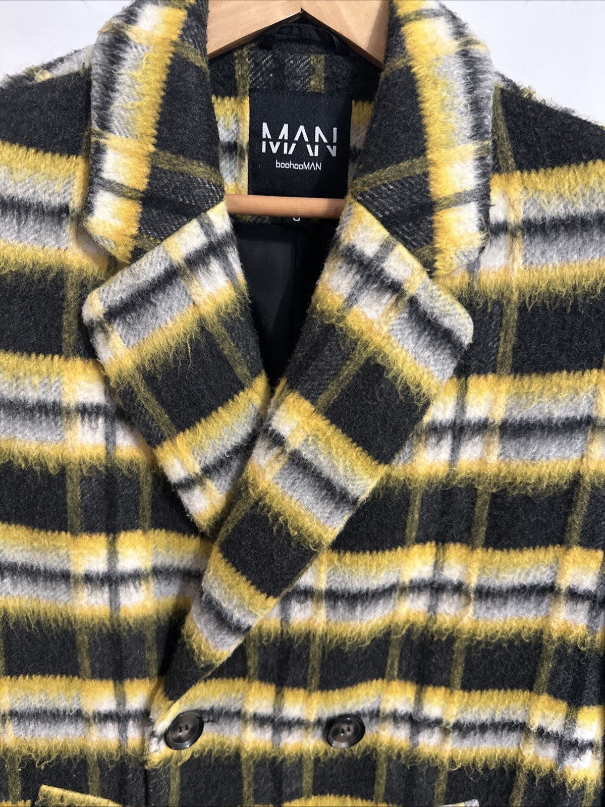 The BoohooMAN Men's Double Breasted Overcoat is a stylish and versatile outerwear piece for men. Made from wool, this long coat features a button closure and is perfect for casual occasions during the winter and fall seasons. The yellow color adds a pop of color to any outfit, while the overcoat style provides a classic and sophisticated look. With a chest size of 36-38 inches and a regular size fit, this coat is a must-have for any man's wardrobe.