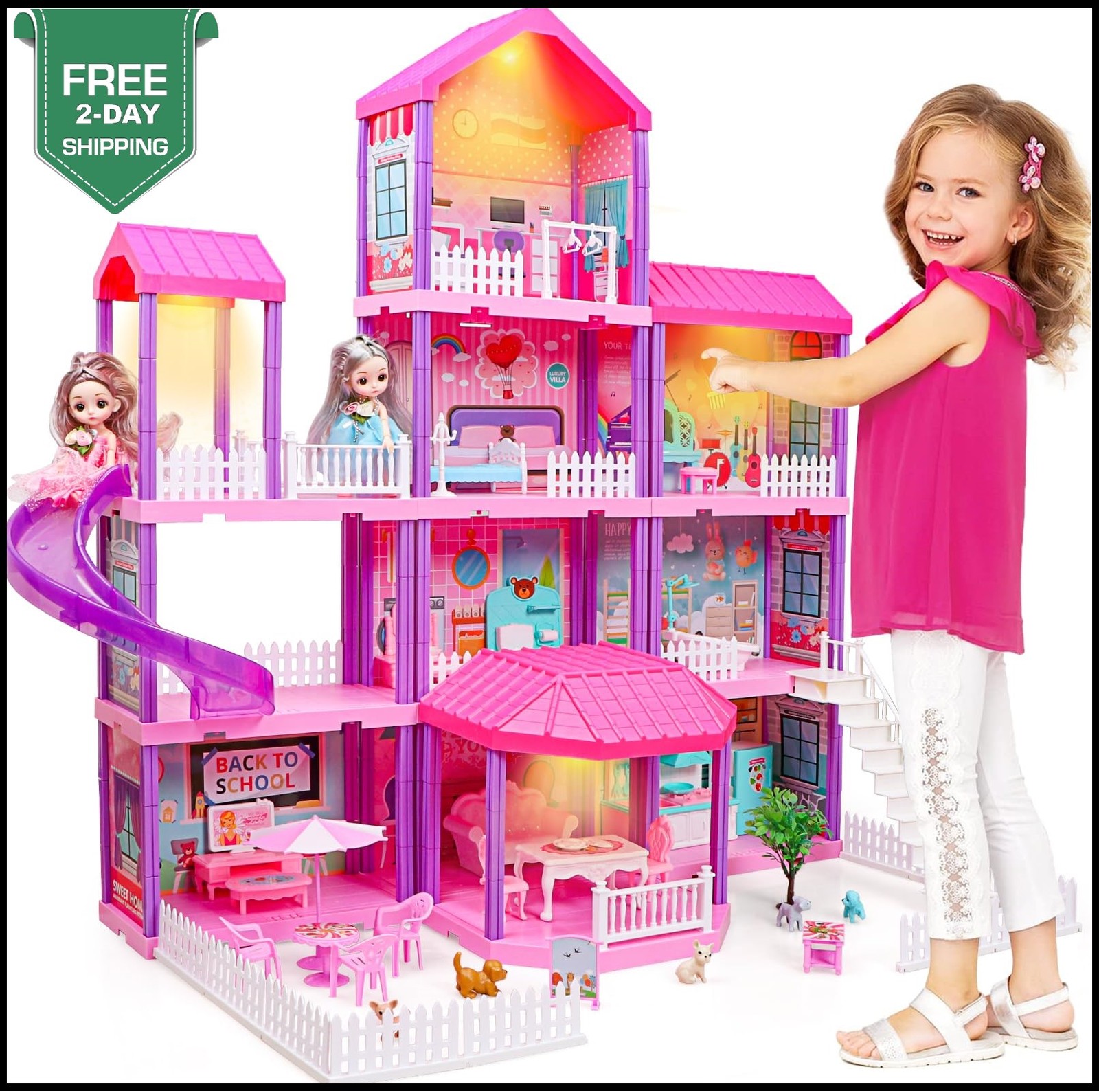 $ 66.0"New Barbie Dreamhouse, Pool Party Doll House with 4 Story Slide "