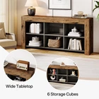 Horizontal Bookcase, Industrial 6 Cubes Storage Organizer Long Bookshelf, Rustic Wood Low Bookshelf Wide Cubby Bookcase for Home Office, Living Room About this item 1、[Generous Storage Capacity]: This horizontal bookcase provides ample space for organizing and displaying your books, plants, or decorative items. With its six-cube storage suitable, you can easily keep your belongings organized and within reach. 2、[Industrial Rustic suitable]: With its rustic brown wood finish and antique knife-cut texture, this low bookshelf adds warmth and character to any space. Its unique appearance effortlessly blends with various interior decor styles, creating a cozy ambiance for your home. 3、[Reliable Structure]: To give you peace of mind when using the wood bookshelf in daily life, this cube bookcase is crafted from high-quality MDF and can support heavy books or other items, making it a reliable storage solution for your space. 4、[Versatile Placement Options]: The open-shelf bookcase is an ideal storage solution for the home office. Whether you choose to use this in your living room as a TV stand, in a spare bedroom as a storage organizer, or in a study room as a wide bookcase, this cube bookshelf will make a practical and stylish addition. 5、[Effortless Assembly]: The bookcase provides quite clear instructions and necessary tools, guiding you step-by-step through assembly, and all the parts are numbered and easy to distinguish. If you have any questions about our products or need service, please feel free to send us an email. Product Description Featuring an extraordinary suitable and a remarkable storage capacity, this wood bookshelf is a worthy addition to any space. This 63-inch long bookshelf houses 6 ample storage cubes, providing you with the perfect platform for neatly organizing your books, files, and personal items. Its convenient top can be used to showcase your favorite decor or handy utilities. A tasteful symbiosis of antique brown wood finish and charcoal gray cubes crafts an exquisite suitable that captures the essence of rustic and industrial styles. Free Shipping to Most US area! Please note that Certain automotive parts may be subject to regulatory restrictions in the state of California (CA), which can prevent us from shipping these items to addresses within CA. Destinations including Puerto Rico (PR), U.S. Virgin Islands (VI), Guam (GU), Northern Mariana Islands (MP), (AS) , (AK) ... are considered U.S. territories but may be subject to extended delivery timelines and additional shipping fees due to their remote locations. We encourage customers placing orders to these areas to contact us prior to completing your purchase, so we can confirm shipping availability and any potential surcharges. Thank you for your understanding. On Apr 12, 2026 at 05:25:28 PDT, seller added the following information: