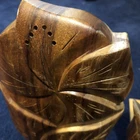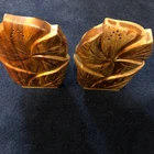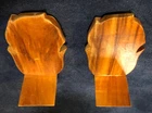 Add a touch of Polynesian culture to your bookshelf with these beautifully crafted bookends from Woods of Hawaii. Made from high-quality koa wood, these bookends feature a stunning plumeria design that will add a touch of tiki to your space. Measuring 7x5 inches, they are the perfect size for supporting your favorite reads. The intricate carvings and floral pattern make these bookends a true work of art. Whether you're a fan of Tiki culture or simply looking for a unique addition to your decorative collectibles, these bookends are sure to impress. So why wait? Add a touch of Hawaii to your bookshelf today with these stunning bookends from Woods of Hawaii.