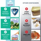 > BopTop Available in sets of 2, 3, 5 and 1 brown tinted option for sunlight-sensitive items. >Smart Design >Durable Construction >BPA-Free >Notes Materials: AS/ABS/Silicone Container: Impact Resistant ABS Container Temperature Tolerance: -4°F ~ 176°F (-20°C ~ 80°C) Lid: Impact Resistant ABS Lid Temperature Tolerance: -4°F ~ 158°F (-20°C ~ 70°C) Built-in Screw: Stainless Steel 304 Lid/Container Seal: Silicone 330 Care Instructions: 1. Microwaves and high temperatures can deform the lid seal. This can affect the airtight capacity of the lid. 2. Lid should be disassembled prior to cleaning. Please ensure all components are completely dry before reassembly and use. 3. If storing hot liquids: do not turn upside down, or shake container 4. Do not wash, clean or scrub with abrasive brushes or abrasive cleaning powders. >BopTop< The modular easy-use mechanically sealable container that keeps food fresh. Container Size: 1 container = 1x2000ml = 2000ml (67 fl USoz/8.4 cups/2 USQt) 4.88”x4.88”x8.58” (124x124x218mm) DxWxH >Smart Design< Mess-free curved corners make it easy to pour food out. Perch lid on edge of the tank using the built-in hook when canister is in use. Lid can be easily disassembled for cleaning, as necessary. Top-rack dishwasher safe. >Durable Construction< Long-lasting, shatter-resistant, fridge/freezer safe*, stain and odour-resistant plastic set that you can use for years. >BPA-FREE< BPA-free construction ensures no chemicals leech into food. >Notes< Not intended for microwave use — temperatures exceeding 176°F/80°C can deform the silicone seal and affect the airtight capacity of the lid. Do not tilt upside down with hot liquids inside. Lid should be disassembled prior to cleaning, and fully dry prior to use. Do not wash, clean or scrub with abrasive brushes, or abrasive cleaning powders. For best airtight seal please ensure silicone seal and rim, where is made, is kept clean. *Limited 1-year .