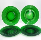 BRAND: Bormioli Rocco Forum Emerald Green Italian Glass MCM Set of 4 Plates. Made in Italy. COLORWAY: Emerald Green SIZE: Approximately 10.5 Inches Across. CONDITION: These 4 emerald green glass plates by Bormioli Rocco MCM Emerald Green Italian Glass. They are beautiful and have no signs of chips or cracks. They make excellent individual serving plates or as chargers under smaller plates. The color is stunning for the Holidays or even St. Patrick's Day. Due to the age (Mid-Century) of these lovely plates utensil marks are to be expected Please see my photos for exact details. Thank you so much for shopping with me today and hope you have a wonderful week!!