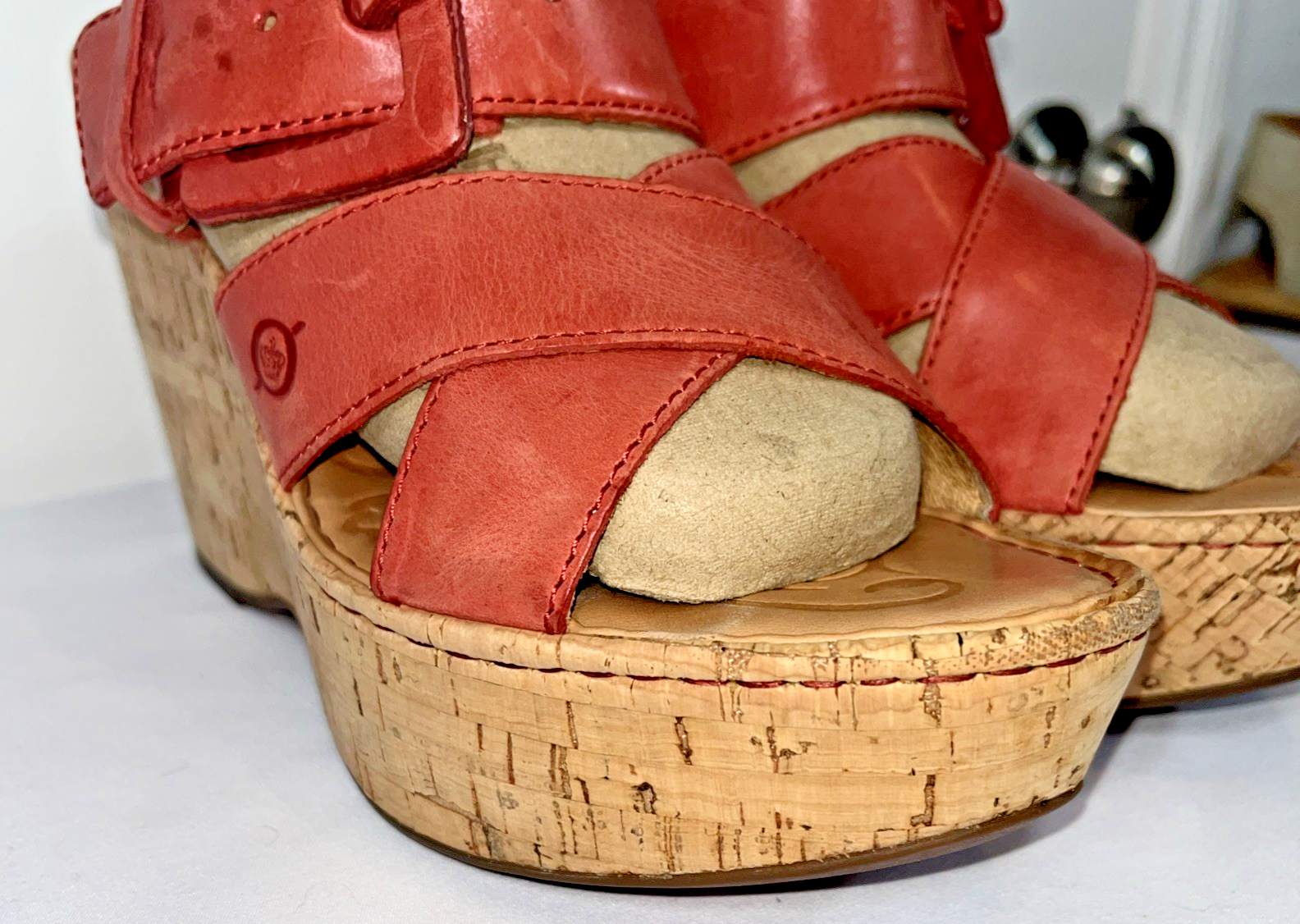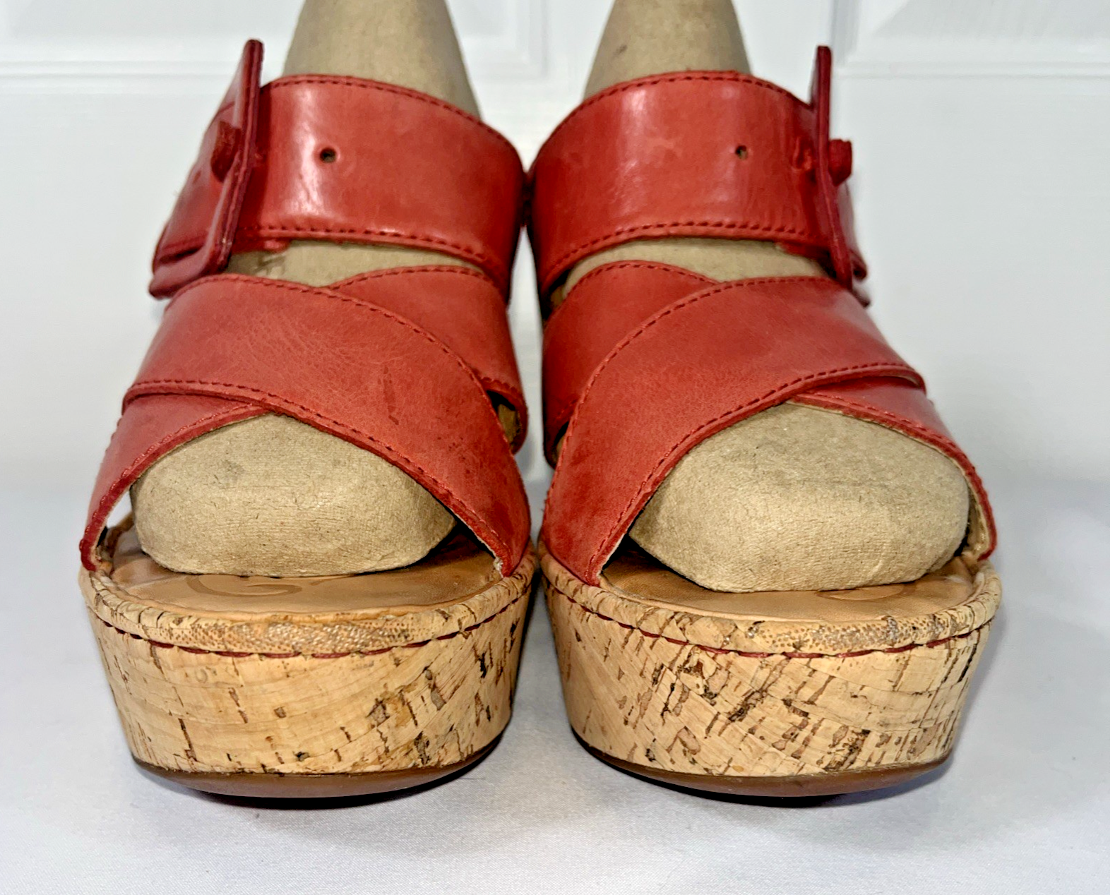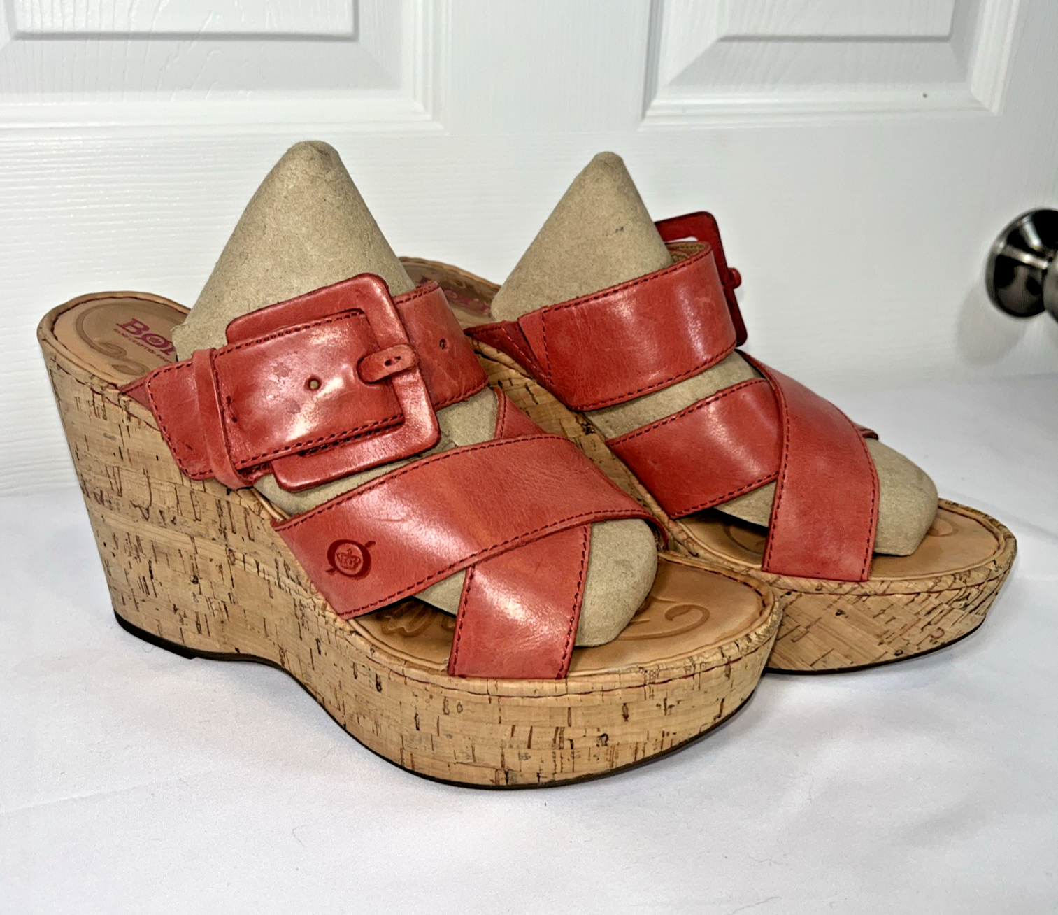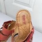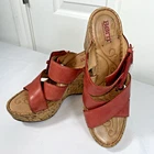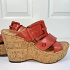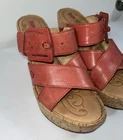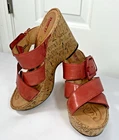 Add a pop of color to your shoe collection with these Born Beau pink wedge sandals. These leather cork wedge slip on sandals with straps and buckle add a touch of elegance. These sandals are perfect for any occasion, whether it's a party, cocktail event, or casual outing. The ultra-high wedge heel adds an extra boost of confidence to your outfit. Preowned and gently use, do show some signs of wear. NO holes, tears. Please view all pictures carefully, check measurements and sizes, and please message us with any questions. All shoes cleaned and sanitized. Message if you need additional pictures. · Size 9. Shipping USPS ground advantage. See another item in SweetShine?s listings you?d like to purchase? We combine shipping. Shop with confidence***Returns accepted within 30days! Returned items must be returned in original condition received, buyer pays return shipping cost. Follow us here on eBay. Take a peek at SweetShine's other listings. Thanks for viewing. Happy Shopping!