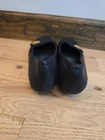 The product is a pair of Born black leather women's size 7.5 kitten heels loafers pumps shoes. These slip-on shoes feature a solid black color with a round toe shape and a low kitten heel. They are designed for work occasions and offer a cushioned sole for comfort. Made from leather, these classic heels are stylish and practical for everyday wear.