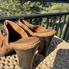 Born Shoes Womens 9 40.5 Brown Leather Studded Buckle Slip On Heeled Mule Clog Item pre-owned. Pictures depict accurate condition. Great condition with slight wear at back of heel. See final pics for details. ***FAST SHIPPER *** The Born Shoes Women's Brown Leather Studded Buckle Slip On Heeled Mule Clog is a stylish and comfortable pair of heels perfect for women who want to make a statement with their footwear. The slip-on design and block heel make it easy to wear and walk around in all day, while the round toe shape and leather upper material provide support and durability. The brown color and studded buckle accents add a touch of edgy flair to the design, making it a versatile option for any outfit or occasion. Perfect for adding a unique and trendy twist to your wardrobe.