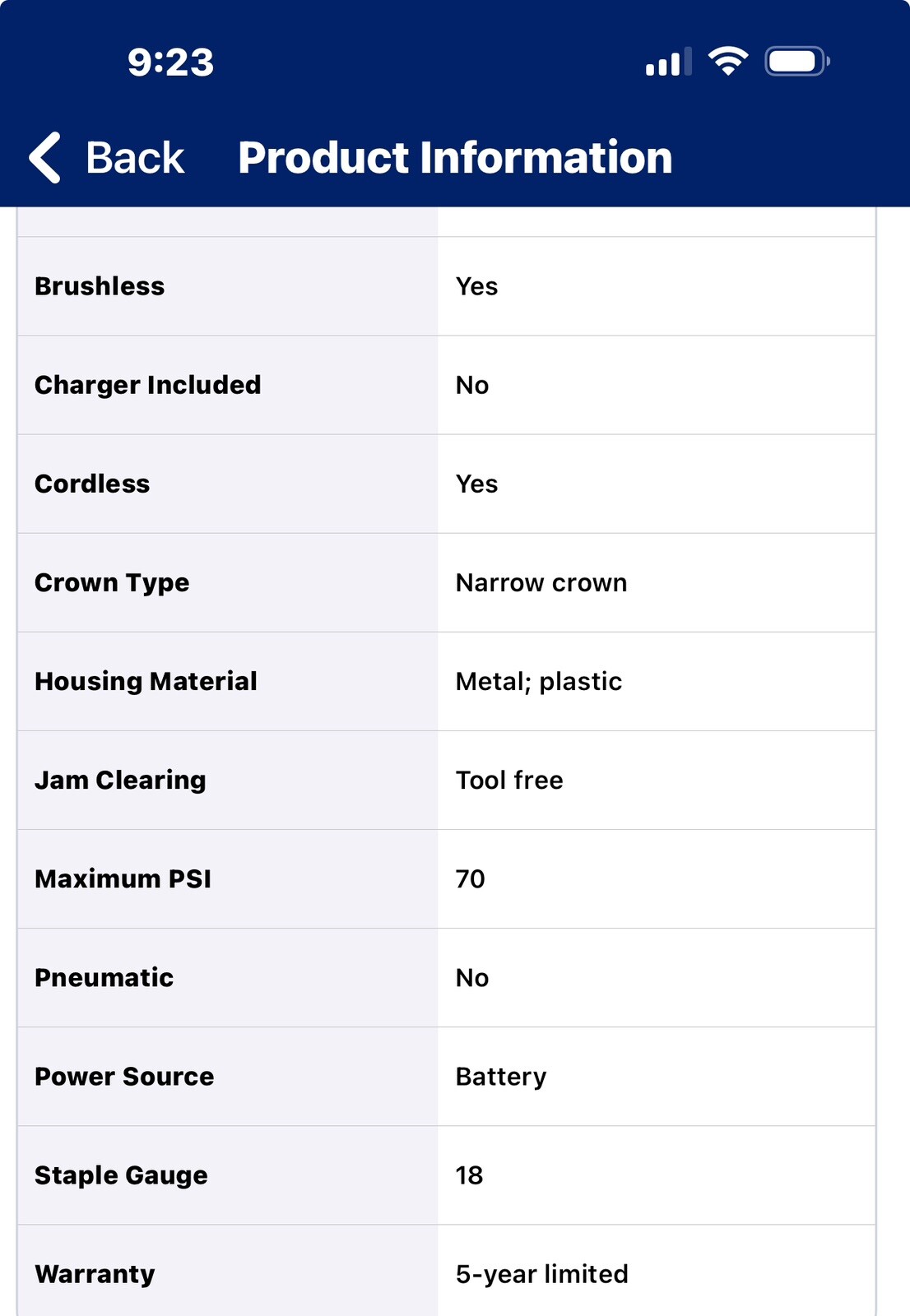 The Bosch GTH18V-18M 18V Brushless 18-gauge Narrow Crown Stapler delivers power and precision in a cordless solution. Experience uninterrupted productivity while navigating tight spaces and hard-to-reach areas by eliminating the hassle of compressors and hoses. The efficient, brushless motor delivers the power to consistently sink 18-gauge narrow crown staples ranging from 3/8 In. to 1- ½ In. which makes it ideal for furniture and upholstery applications, cabinetry, and flooring underlayment. The 18-gauge narrow crown stapler has a magazine capacity of 110 staples. When paired with a CORE18V 4 Ah battery (sold separately), it can fasten up to 1,800 staples per charge, ensuring extended productivity. One-handed activation simplifies the process for quick and hassle-free fastening, catering to both right- and left-handed users. A double LED light illuminates the work area for more precise and efficient fastening. The dry-fire lockout feature automatically stops operation when down to the last five staples. This not only prevents blank firing but also safeguards the workpiece from potential damage. Make easy and precise adjustments to the depth setting with the ergonomic thumb wheel. Additionally, downtime is minimized as jammed staples can be quickly cleared through a tool-free release mechanism while on the job. An intuitive user interface allows for easy toggling between single and bump-fire modes, turns the LED light on and off, and informs the worker of scheduled maintenance of the tool. An integrated heavy-duty belt hook provides easy portability and storage between tasks. • One-handed activation provides quick, hassle-free nailing • Tool-free jam clearing for increased productivity • Easy depth adjustment for quick, stepless changes • Low recoil -for enhanced comfort and control • Pneumatic-like performance - provides unmatched productivity gains by eliminating the need for compressors and hoses • Extended productivity - fasten up to 1,800 staples per charge with a CORE18V 4 Ah battery (sold separately) • Tool-free jam clearing - to quickly remove stuck nails • Double LED - illuminates the work area for added accuracy • battery sold separately