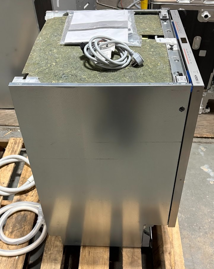 Bosch 800 Series SHV78B73UC 24" Fully Integrated Panel-Ready Dishwasher This dishwasher is new, out of the box. It has never been installed. The dishwasher has blemishes like scuffs and dings on the sidewall of the tub. The scuffs on the left side and dings on the tub are shown in the listing's pictures. Tested and ran a cycle with no issues. Comes with power cord and instruction manual. Please do not assume extra accessories not shown in the listing are included. The sidewalls are made of thin sheet metal, so they often bend like this from being moved around. FREIGHT SHIPPING: SHIPPING IS CALCULATED BASED ON YOUR LOCATION FOR ANYWHERE IN THE LOWER 48 STATES. ALL SHIPMENTS ARE INSURED. WE MUST SHIP TO YOUR EBAY ADDRESS ENTERED AT CHECKOUT PER EBAY RULES. After payment we will ship your products with a freight trucking company strapped to a pallet and shrink wrapped for safety of your order. Please allow 7 to 10 days to arrive. If your shipment is going to a commercial address, a semi truck has to be able to gain access to the business and it cannot be in a residential area. If your shipment is going to a residential address, it is vital that you are present when shipment arrives. The Trucking Company will call you before delivery. Liftgate service is available by request. It is important that you open or inspect all equipment pieces you purchased from us. Budgetsavers takes every precaution to package your items properly for shipment. In the event that damage is evident, BE SURE to note the damage on the trucking bill of lading and accept the shipment. Do not let the driver leave without noting the damage on the bill of lading. ACCEPTANCE IMPORTANT READ THE BELOW STATEMENT: IF YOU OR SOMEONE ELSE ON YOUR BEHALF ACCEPTS THE DELIVERY WITH NO DAMAGE NOTED AND DAMAGE IS FOUND LATER YOU WILL NOT BE ABLE TO MAKE A CLAIM. ONCE YOU ACCEPT THE FREIGHT, YOU WAIVE ALL RIGHTS TO MAKING A FREIGHT CLAIM. SO PLEASE INSPECT THE ITEM DURING DELIVERY AND NOTE ANY DAMAGE ON THE BILL OF LADING BEFORE THE FREIGHT DRIVER LEAVES.