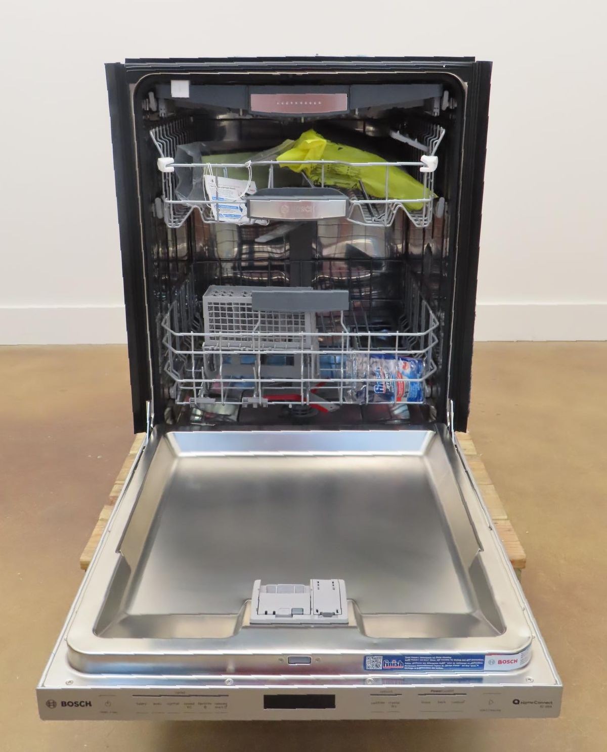 ebay template About Policies Shipping Returns Payment FAQ Contact Refrigerators Ovens Cooktops Microwaves Dishwashers Hoods Ice Makers Miscellaneous Ranges Warming Drawers Washers and Dryers Wine Cellars Other Bosch 800 Series SHP78CM5N 24" Fully Integrated BuiltIn Smart Dishwasher Details PLEASE NOTE that the following is the manufacturer's description, inclusions and accessories mentioned in the manufacturer's description may not be included with this particular item . This is a "what you see is what you get" item. Please contact us if you have any questions. PLEASE READ shipping info section carefully to know if this item will ship Ground or Freight and if you will be asked to add a lift gate. CANADA BUYERS are required to pay via PayPal ONLY . Credit card payments will not be accepted and will be cancelled . NJ, NY, WA, ID, CO, UT, DC, OR, MT, N, AZ, WY AND CA BUYERS: Free shipping DOES NOT APPLY! If you want your product to be shipped to NJ, NY, WA, ID, CO, UT, DC, OR, MT, NV, AZ, WY AND CA BUYERS please contact us for a shipping quote. Product Description Bosch 800 Series SHP78CM5N 24 Inch Fully Integrated Built-In Smart Dishwasher 16 Place Setting Capacity, 8 Wash Cycles, Flexible 3rd Rack, 42 dBA, PrecisionWash® with PowerControl™ and Home Connect®: Stainless Steel Quick Specs: Width: 23 9/16 Inch Depth: 23 3/4 Inch Height: 33 7/8 Inch Capacity: 16 Place Settings Control Type: Touchpad Adjustable Upper Rack: Yes Third Rack Type: Adjustable Stainless Steel Interior: Yes WiFi: Yes Cycles: 8 Dry Type: Heated NSF Certified Rinse: Yes This unit is new out of box in good cosmetic condition. Some flaws are shown in the pictures: 1-SCRATCHES ON THE TOP OF THE CONTROL PANEL (PIC 4) . 2-DINGS ON THE INNER DOOR (PIC 6) . This unit comes with full manufacturer's warranty. This warranty does not cover cosmetic imperfections, functionality only. Pictures are of the actual unit. Free shipping is excluded for these states: NJ, NY, WA, ID, CO, UT, DC, OR, MT, NV, WY, AZ & CA. If you reside in one of these states, please call us at 205 407 6621 for shipping quotes. This item will require lift gate for delivery which is $89.00 Please call us at 205 407 6621 for more info. THIS ITEM MUST BE SHIPPED FREIGHT. SPECIFICATIONS: Brand: Bosch Series: 800 Series Model: SHP78CM4N Dimensions Width: 23 9/16 Inch Depth: 23 3/4 Inch Height: 33 7/8 Inch Cutout Width: 24 Inch Cutout Depth: 24 Inch Cutout Height: 33 7/8 Inch Capacity Capacity: 16 Place Settings Appearance Type: Built In Color: Stainless Steel Accepts Panels: No Features Control Type: Touchpad Electronic Display: Yes Control Style: Fully Integrated Recessed Handles: Yes Child Lock: No Adjustable Upper Rack: Yes Fold-Down Tines: No Third Rack Type: Adjustable Cutlery Tray: Yes Cup Shelves: Yes Stemware Holder: No Tall Tub: No Stainless Steel Interior: Yes Fingerprint Resistant: No Leveling Legs: Yes Interior Light: No Smart Home / App Compatible: Yes Smart Home Protocol / App Compatible: Home Connect® Remote Access: Yes Smart WiFi: Yes Remote Control: Yes Remote Monitoring: Yes Remote Diagnostics: Yes Smart Accessory Required: No Wash Features Cycles: 8 Options: 6 Dry Type: Heated Hard Food Disposer: No NSF Certified Rinse: Yes China/Crystal Setting: Yes Sanitize Cycle: Yes Heavy Duty Wash: Yes Sound Level: 42 dB Leak Protection: Yes Technical Details Energy Star Rated: Yes ADA Compliant: No Approved for Outdoor Use: No Voltage: 120 Volts Watts: 1,440 Watts FEATURES: 16 Place Setting Capacity Generous interior space means more clean dishes and fewer loads. Racks fit 16 full place settings including a dinner plate, salad plate, bowl, mug, and 16 5-piece sets of cutlery. Flexible 3rd Rack The Flexible 3rd Rack with fold-down sides adds 30% more loading area, perfect for utensils and ramekins. 42 dBA The dishwasher runs quietly so your kitchen conversations aren't interrupted. Home Connect® Enhance your cleaning experience with WiFi-enabled Home Connect®. Access additional wash cycles and options or choose the right one for your needs using Smart Cycle. PowerControl™ Spray arm targets your dirtiest dishes with a deeper clean, no matter where you load them on the bottom rack. InfoLight® The InfoLight® bar shines below the handle so you know the dishwasher is running. Rackmatic® The adjustable upper rack easily adjusts to 9 different positions to allow taller items like stemware to fit, while leaving room for pots and pans below. CrystalDry™ Option Patented CrystalDry™ technology transforms moisture into heat to get dishes, including plastics, 60% drier. PrecisionWash® With Bosch's PrecisionWash®, simply start your dishwasher and walk away. Precision spray arms target tough, stuck-on food while a sanitized option eliminates 99.9% of bacteria for a reliable clean, every time. 24/7 AquaStop® A precisely engineered tub and sensor system with a solid molded base to contain leaks. If a leak has occurred, it shuts down operation and automatically pumps out water to avoid contact with the floor. Now it even works 24/7 and can turn itself on. Concealed Heating Element Concealed water heater prevents plastic items on the bottom rack from melting and protects against accidental burns. Additional Features Wash Cycles - 5 + 3 additional in Home Connect® Options - 4 + 2 additional in Home Connect® Stainless Steel Tub Five-Level Wash NSF Certified ENERGY STAR® Contact Info Return Info Shipping Info Payment Info Contact Info We are open Monday through Friday 8 am to 4 pm central time. We are not open during weekends but we will try our best to respond to all your requests within 24 hours. Please contact us via eBay for any questions. Return Info If there is an issue with the unit shipped please let us know within 30 days. We will take it back and pay for the return shipping. If the mistake is on the buyer's end, the buyer is responsible for paying shipping back and forth. If a customer cancels a purchase even prior to us shipping the product, they 